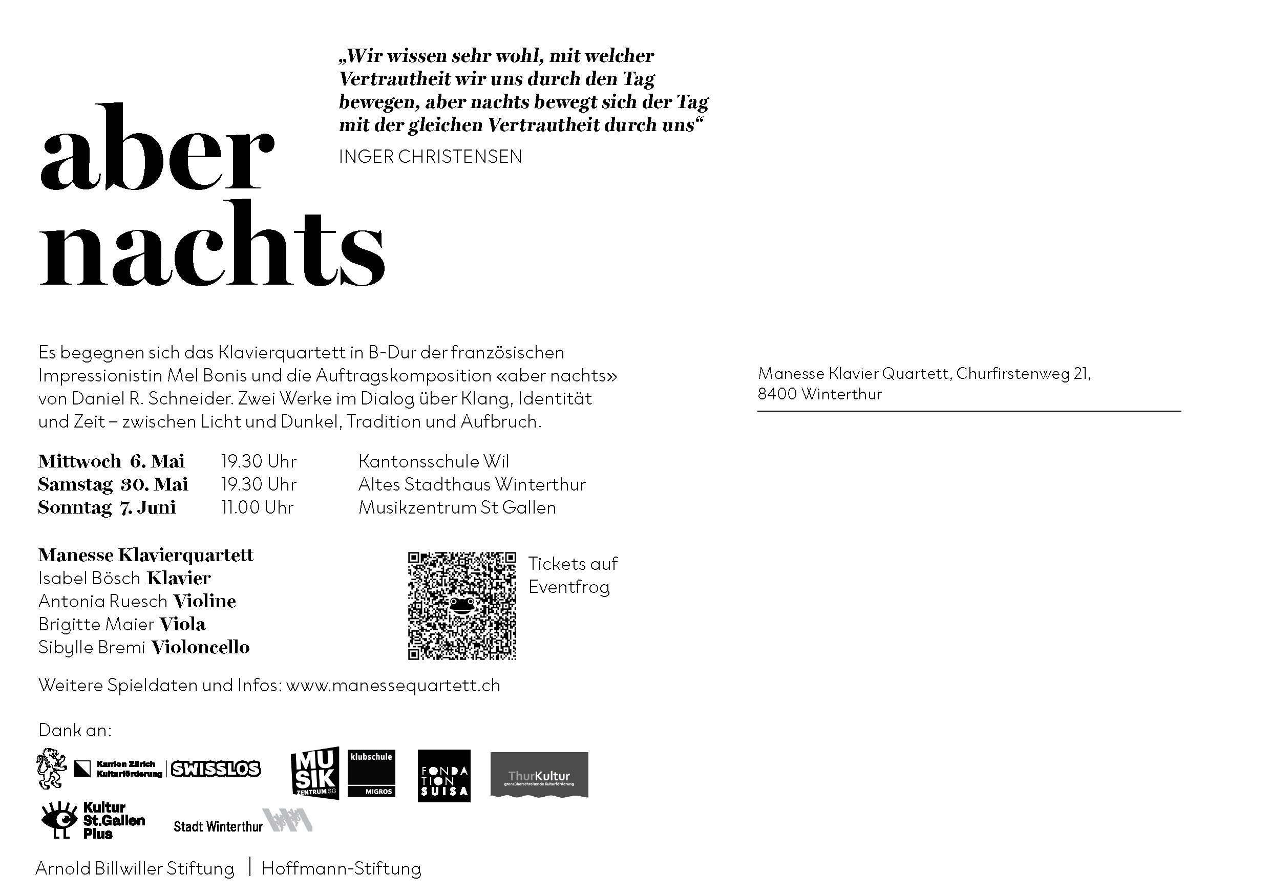 «aber nachts» (2025) für Klavierquartett von Daniel R. Schneider