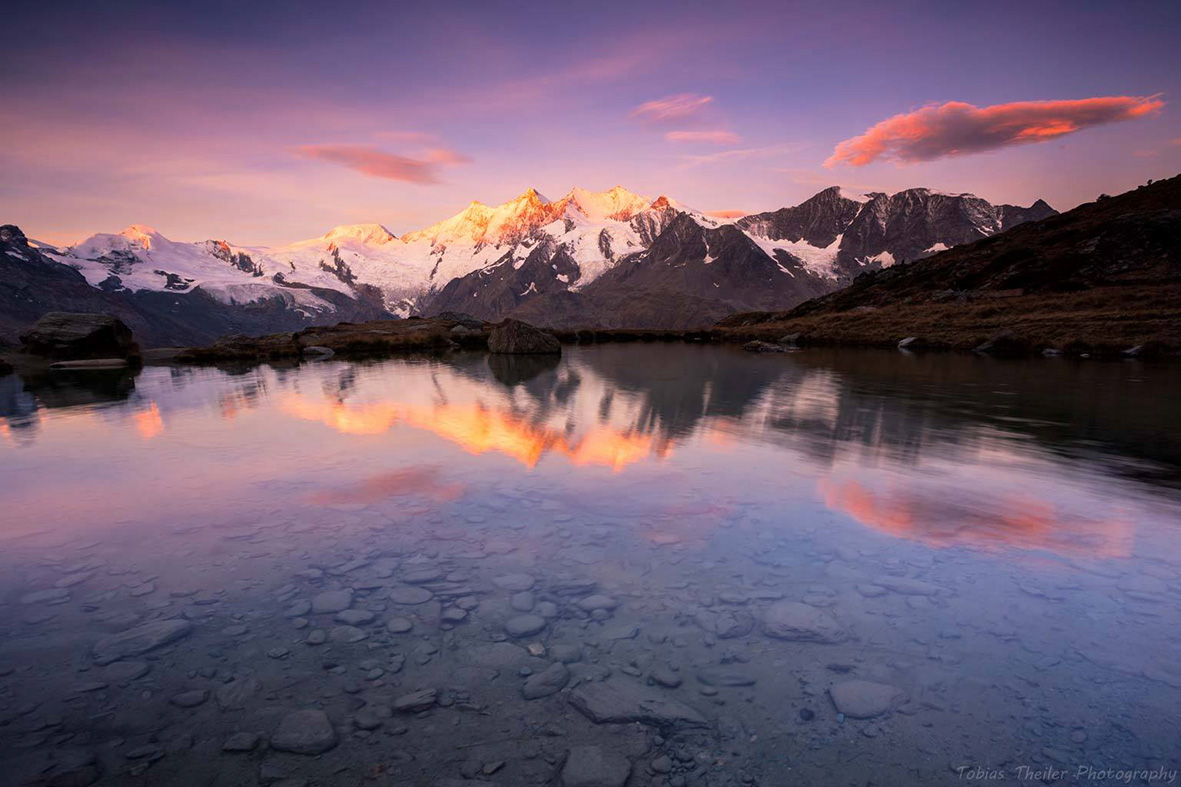 ... einige Minuten später begannen die Berggipfel auf dem Kreuzboden zu glühen. (Bilder: Tobias Theiler)