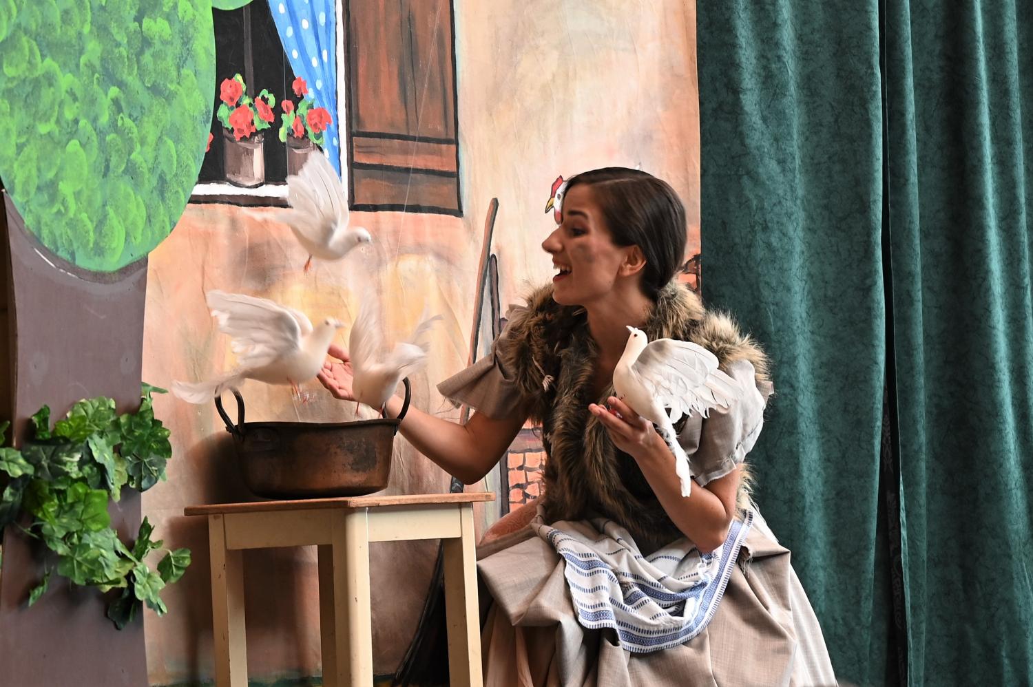 Auch wenn eine mitleidige Kinderseele bei der Premiere ein wenig zu weinen anfing und kundtat, traurig zu sein, hat die Inszenierung die Dramatik der Situation eines Waisenkindes trefflich umgemünzt. Schon allein der Wechsel von Rollen, Kostümen und Orten ist vergnüglich zu verfolgen und auch für kleinere Kinder gut nachzuvollziehen. Natürlich ist es mehr als gemein, wenn Stiefmutter und Stiefschwester sich aufmachen, um tolle Klamotten zu kaufen und Aschenputtel zu Hause bleiben muss – und das, obwohl sie mit Hilfe der Vögel die Linsen schon gut auseinander sortiert hatte („Die guten ins Töpfchen, die schlechten ins Kröpfchen“).