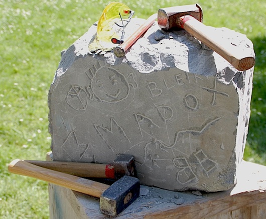Besucher dürfen sich auch selbst am Stein versuchen. Bild: Katrin Zürcher