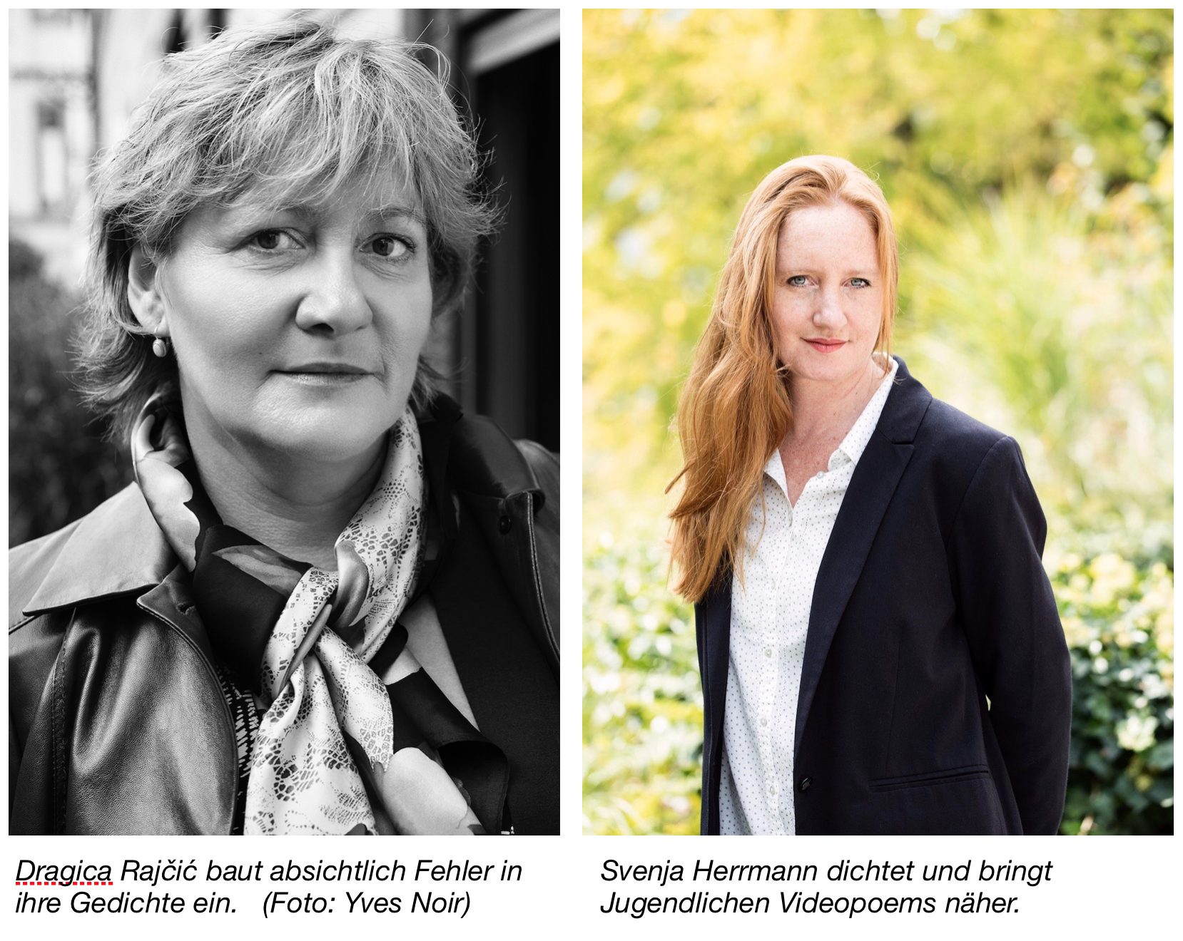 Gedichte muss man nicht unbedingt lesen oder hören. Mit dem neuen Kulturvermittlungsangebot „Video Poem“, das gerade preisgekrönt wurde, kann man Gedichte auch verfilmen. Initiantin ist die Lyrikerin Svenja Herrmann, die am Samstag Abend ebenfalls ihre Texte präsentieren wird. Auf einem Bildschirm im Foyer des Eisenwerks sehen Besucher bereits fertige Filmgedichte von Jugendlichen an, die in Workshops unter der Leitung von Herrmann und der Filmerin Bettina Eberhard entstanden sind.