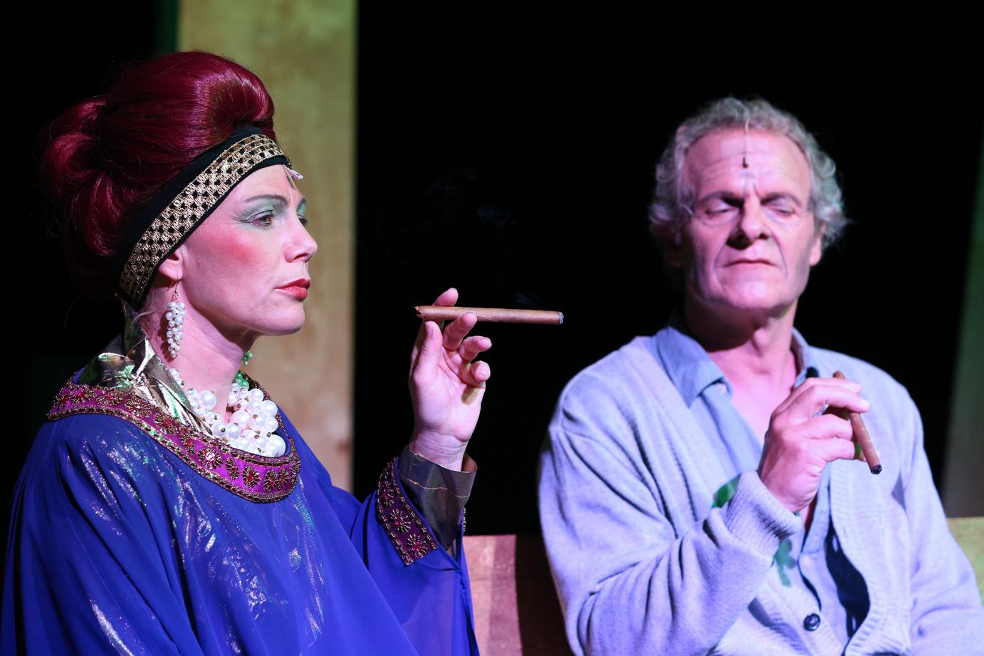 Gibt Claire Zachanassian cool: Monika Ricklin. Rechts Jugendfreund Ill (Rolf Aerne), den töten zu lassen sie zurückgekehrt ist. (Alle Bilder zVg).