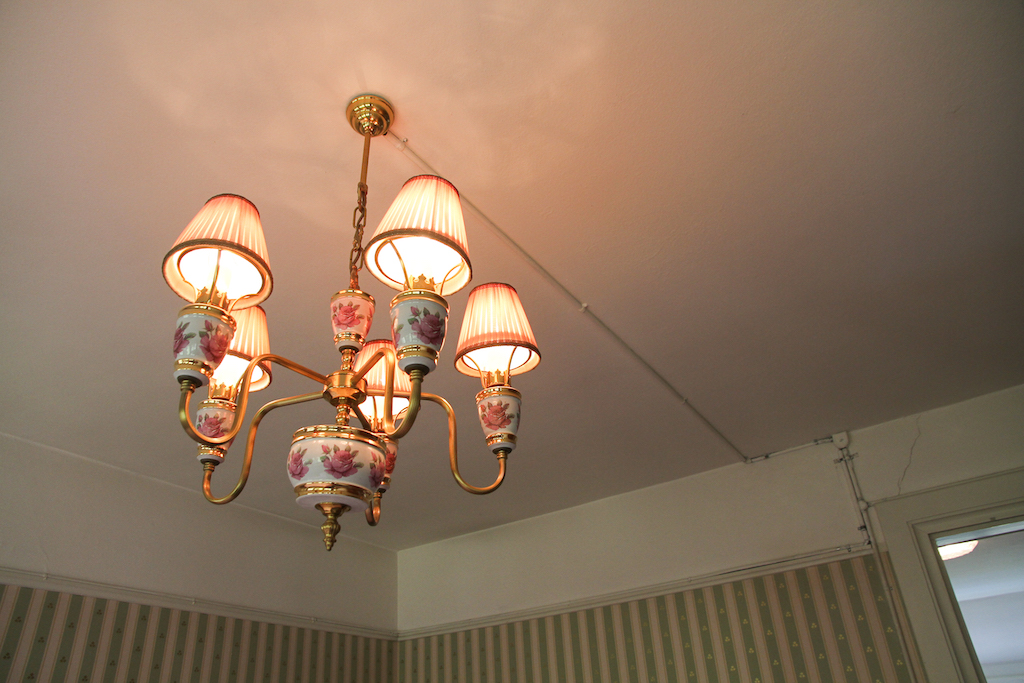 Ein ungewöhnliches Schmankerl haben sich die Restaurateure im zweiten Gästezimmer erlaubt. „Die Elektrik ist komplett modernisiert, sieht aber aus wie früher,“ erklärt Susanne Gloor ihre Idee. Alle Leitungen liegen über Putz und sind in den originalen Rohren säuberlich auf der Wand verlegt. „Wir konnten sogar einen der originalen Lichtschalter erhalten,“ freut sie sich. Zugleich ist dies der einzige Raum, in dem die Tapete von 1905 erhalten werden konnte.