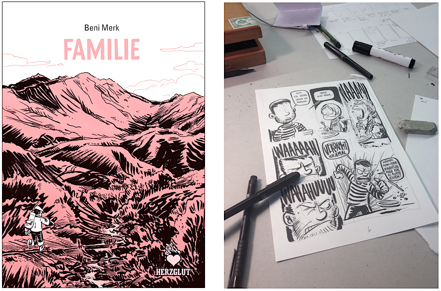 Die Herausforderung anzunehmen, hat sich gelohnt. Aus einer 24-Stunden Comic-Geschichte ist das Buch „Familie“ entstanden, das am 20. Mai im Herzglut Verlag erscheint. Im Herbst 2015 hat Beni Merk im Rahmen des 24h Comic Tages in 24 Stunden 24 Seiten gezeichnet - „so, wie viele andere auf der ganzen Welt oder eben vor Ort in der alten Kaserne Winterthur“.