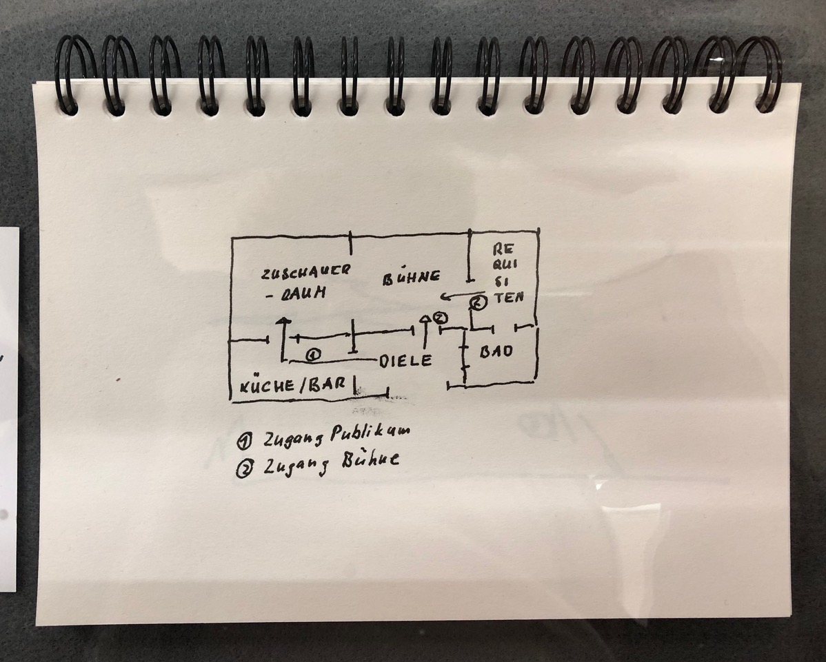 Wer „Schon bald“ kennt, entdeckt in der Ausstellung so manche Passage, die in dieser oder eine leichten Variation ihren Weg ins Buch fand. Selbst den Grundriss der Wohnung, in der Gahse ihr Buch spielen lässt, hatte sie sich in einem Ringbuch vorab aufgezeichnet (übrigens ist dieser im Buch ebenfalls zu finden). Wer weiss, ob Zsuzsanna Gahse nicht eines Tages eine Schachtel mit Textfragmenten herausbringt, solche, wie sie die Protagonisten selbst auch anlegt, und den Leser am Ende selbst entscheiden lässt, in welcher Reihenfolge er die Kärtchen lesen will. Passen würde es zu ihr.