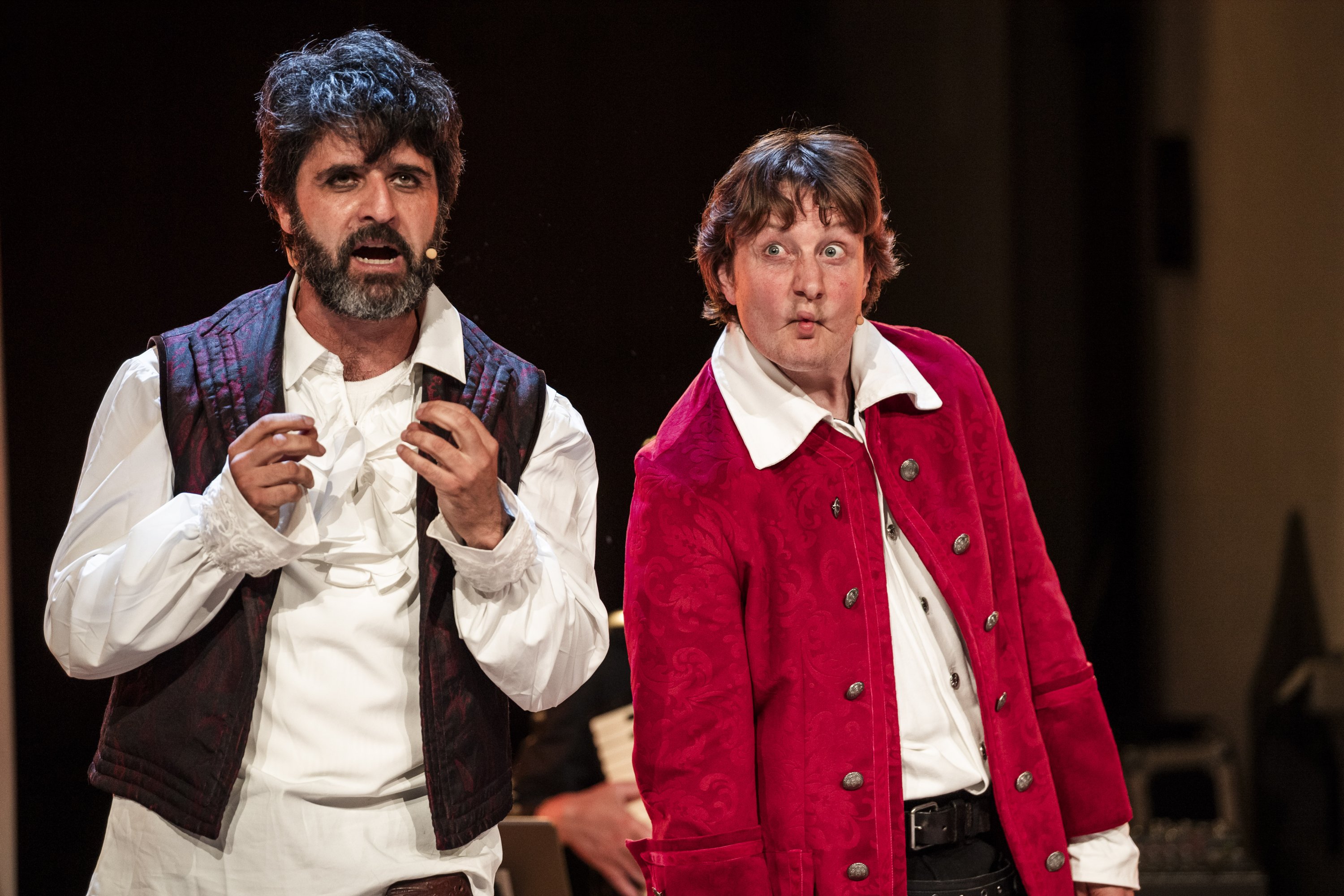 So könnte es jetzt mehr oder weniger spannend weitergehen, wenn da eben diese 20 Jahre später nicht mitgedacht bzw. mitinszeniert wären. Noce Noseda ist nicht nur der Regisseur des Abends, sondern spielt auch einen solchen, der sich gegen sein Ensemble durchzusetzen hat. Das gelingt ihm nicht immer, und es drängt sich zu Anfang der fatale Eindruck auf, das habe mit seiner Körpergrösse zu tun. Alarmstufe rot, Spässe mit so etwas wie Körpergrösse macht man nicht. Hier wirds mit einem dicken Grinsen trotzdem gewagt, wie das gesamte Spiel mit solchen (Un-)Korrektheiten für viele Lacher sorgt.