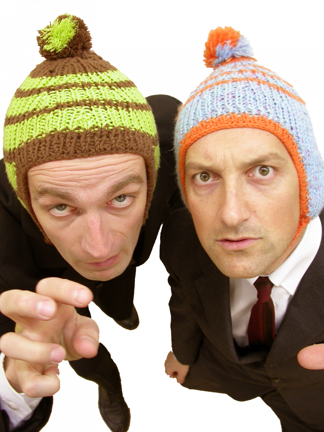 Am Ende ist man meistens schlauer: Die beiden Männer im grauen Anzug, die auf der Bühne sitzend in den Publikumsraum schauen, sind eigentlich das Publikum, wie sich herausstellen wird. Bis sie in ihren Hosentaschen jeweils diese Strickkappen mit Bommel finden und sie sich anziehen.
