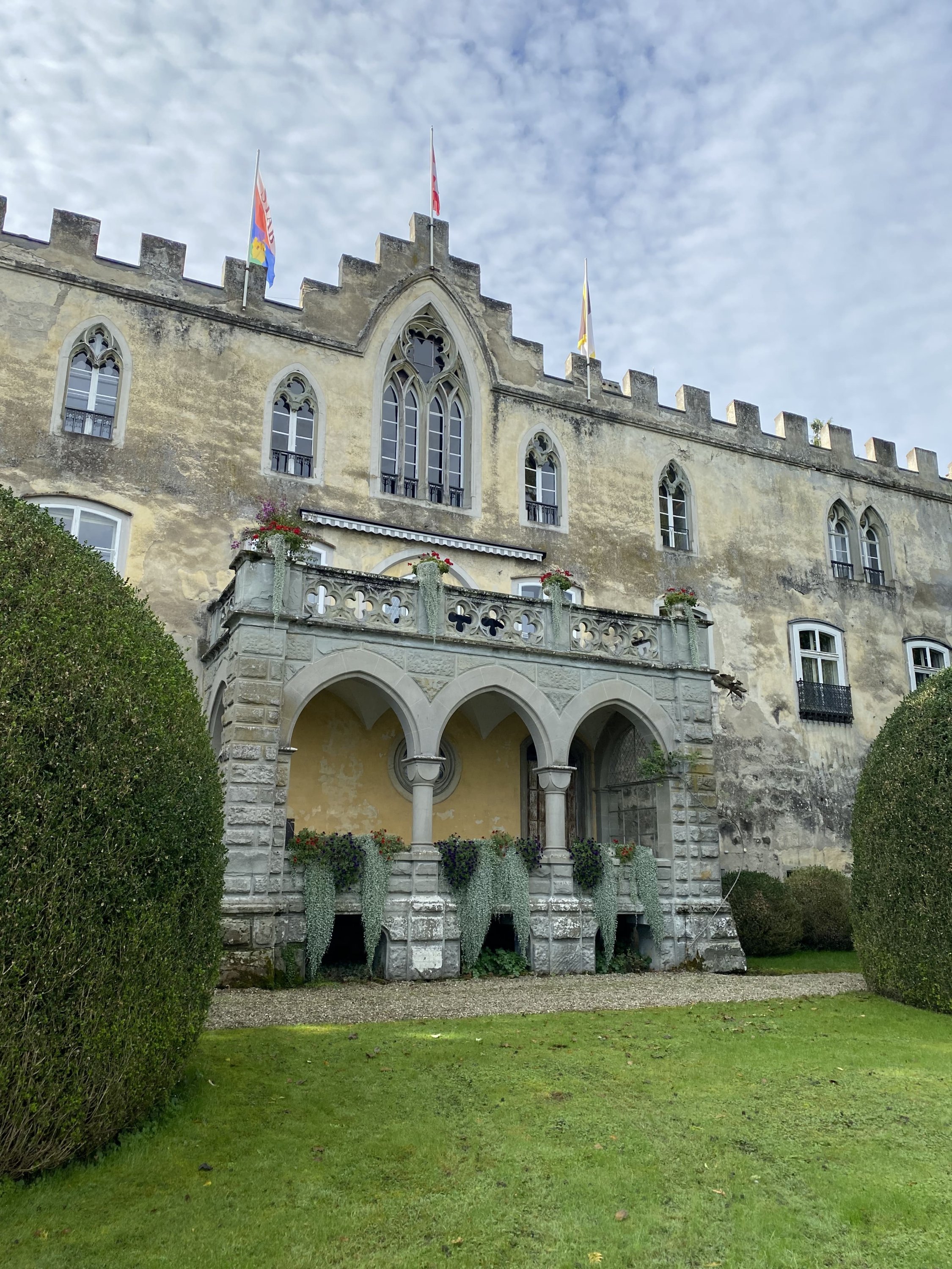Auch Spuren späterer Besitzer sind sichtbar: Eine Sandsteinfassade stammt aus dem Konstanzer Münster und wurde 1837 von der Familie Eugène de Beauharnais eingebaut, nachdem sie das Material günstig erwarb. Im Keller lassen sich Veränderungen aus dem 15. Jahrhundert erkennen – darunter eine Wendeltreppe, die wohl zum Festsaal führte.