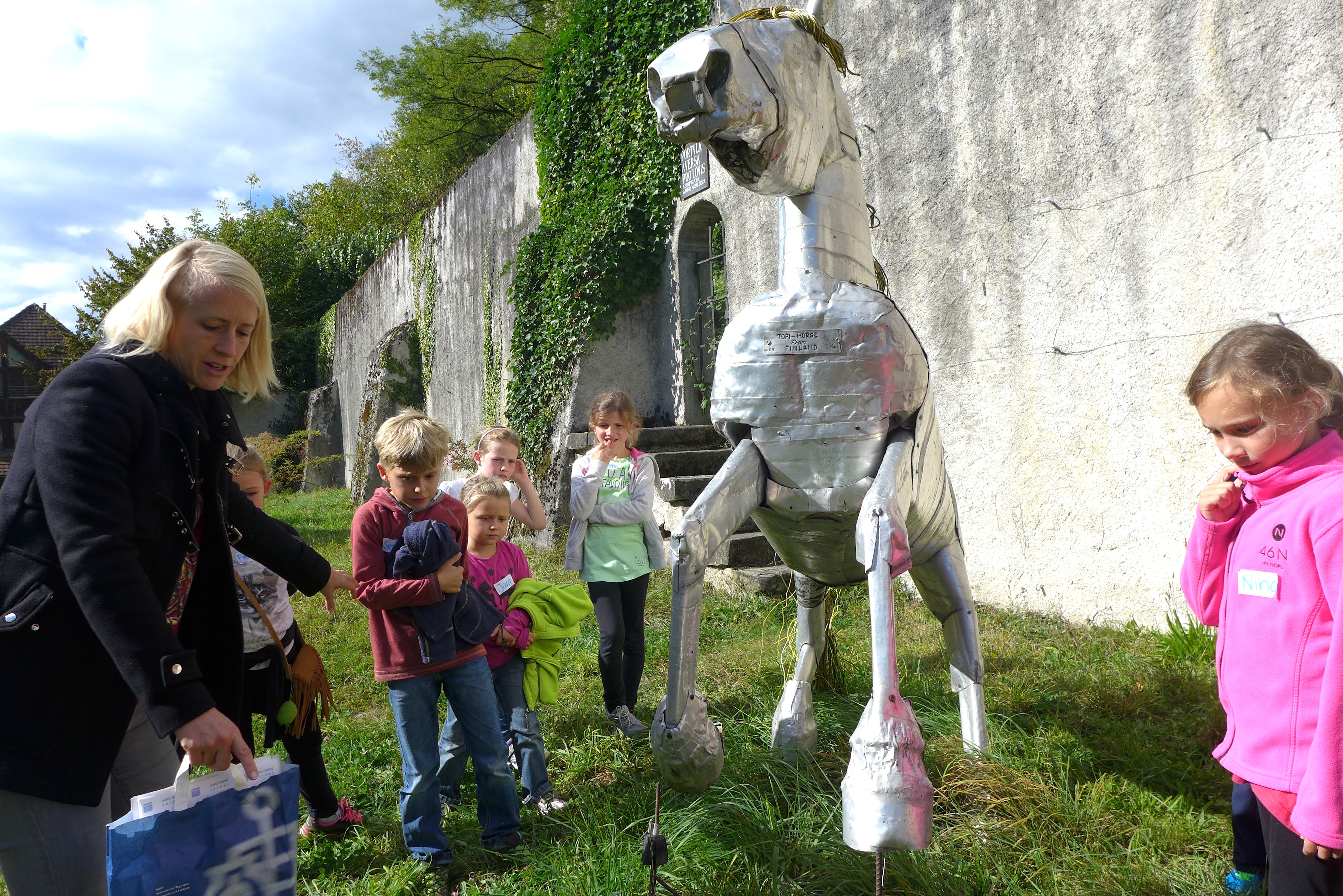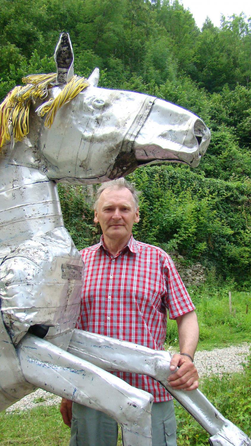 Da reiht sich auch der 1939 in Finnland geborene Bauer Alpo Koivumäki ein. Bis Mitte der 90er Jahre betrieb er seinen eigenen Hof, musste diesen dann aber schliessen. Auf der Suche nach einer neuen Aufgabe begann er aus Schrott, Holzstücken und Plastikabfall meist lebensgrosse Tiere zu gestalten, sodass sich sein Grundstück im Lauf der Zeit zu einer Art Tiergarten der Kunst verwandelte. 2009 wurde er vom Kunstmuseum Thurgau eingeladen eine Arbeit zu schaffen, so entstand das Pferd und 2011 folgte noch eine Bärin mit ihrem Jungen.