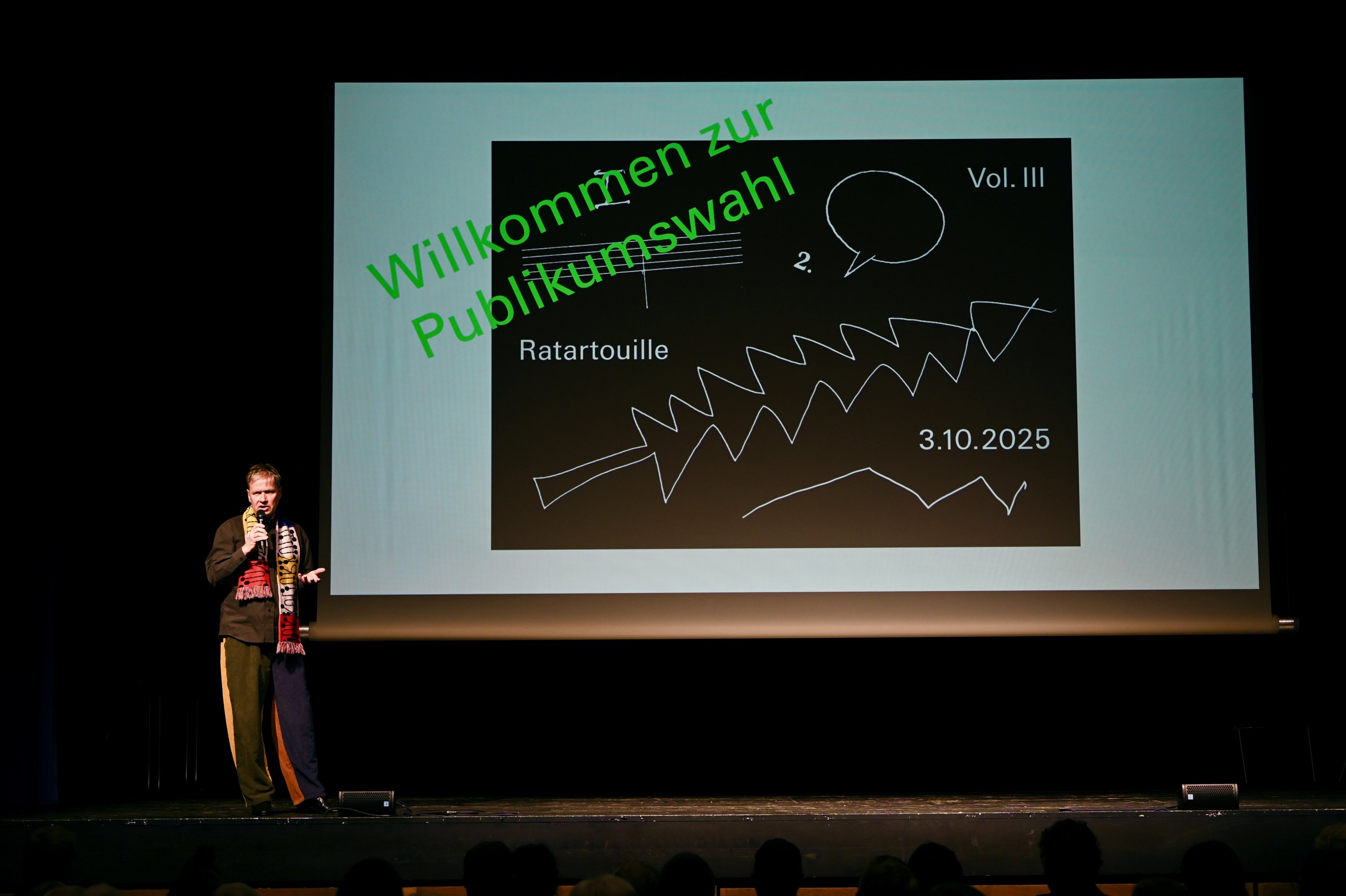 Denn: Ein Teil dieser Umkrempelung des Thurgauer Kulturlebens beinhaltete nicht nur die Abschaffung von Formaten wie der Werkschau und der Lyriktage, sondern auch die Aufforderung oder besser: das Angebot an das Kulturpublikum, sich stärker in den Kulturförderprozess einzubringen. Ein Wesenskern von «Ratartouille» war von Anfang an, dass nach einer jurierten Vorauswahl der Bewerbungen am Ende die Zuschauer:innen vor Ort entscheiden, welches Projekt die ausgelobten 100’000 Franken erhält. Bei rund 100 Menschen im Publikum konnte damit jede und jeder 1000 Franken verteilen.