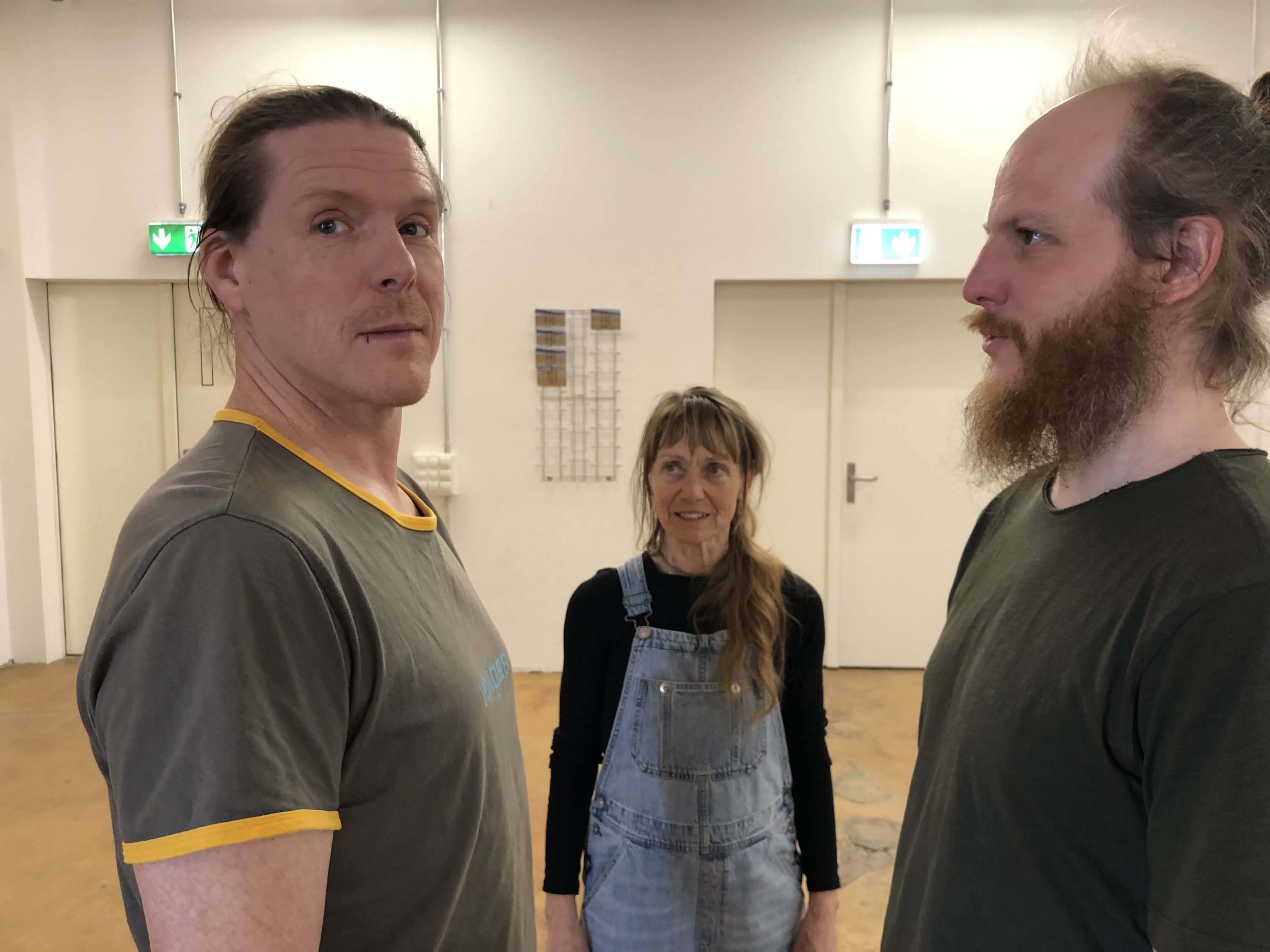 Antworten darauf findet man an einem Freitagnachmittag Anfang April in einem Proberaum des Kreuzlinger Kulturzentrums Kult-X. Christoph Luchsinger und Micha Stuhlmann stehen barfuss im Saal. Thomas Kessler, der Dritte im Projektbunde, trägt Schuhe. Sie stehen einige Meter voneinander entfernt und bewegen sich im Takt eines Metronoms auf Umwegen aufeinander zu.