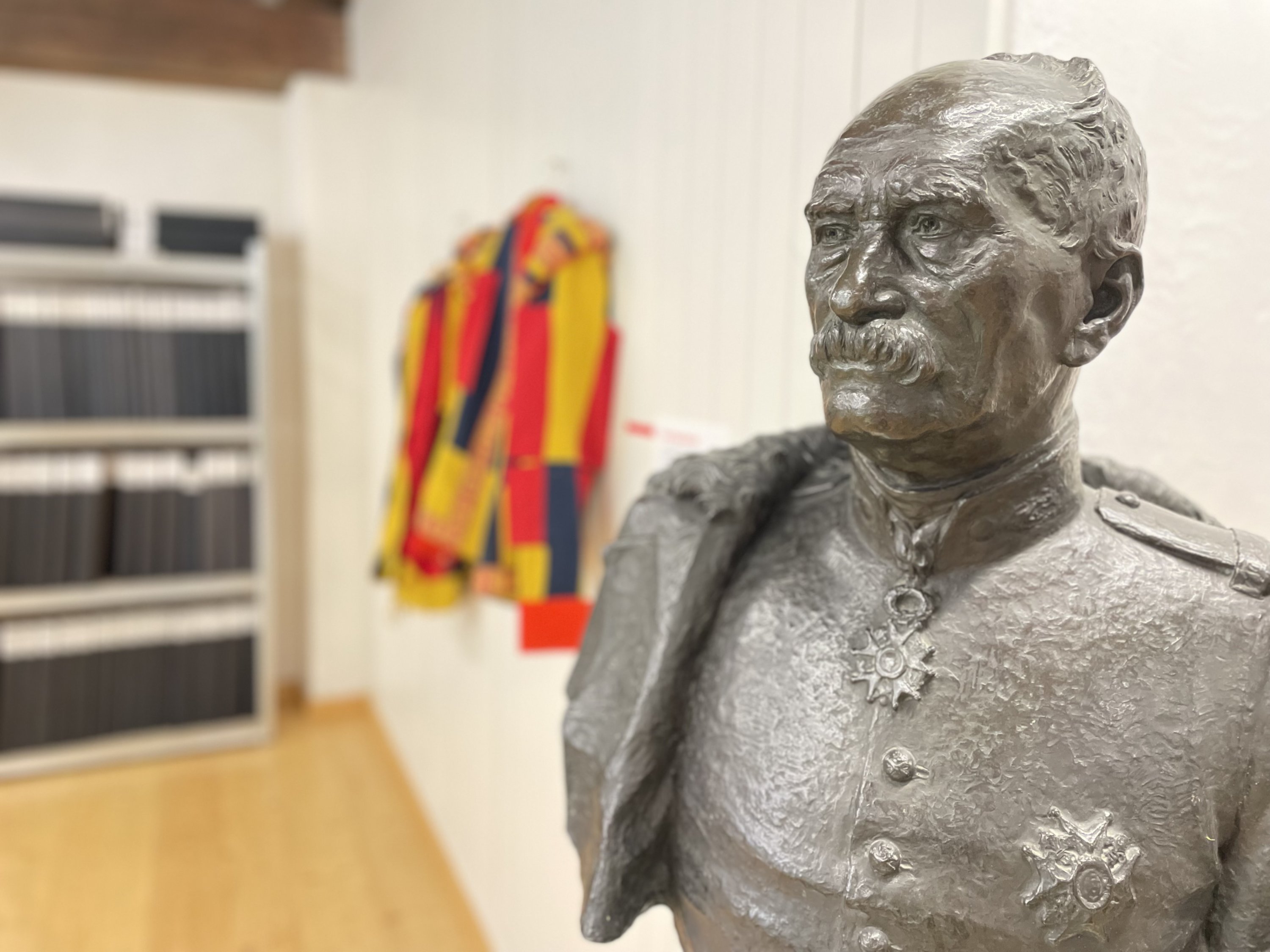 Die Texte zu den einzelnen Objekten sind kurz gehalten. Ein wichtiger Punkt für den Kurator Peter Gubser: „Ich achte immer sehr darauf, dass die Texte präzise und kurz sind, weil die meisten Besucher auch nicht ewig Zeit haben. Wer sich vertiefen will, findet in der Dauerausstellung oder in unseren Publikationen weitere Angaben“, so Gubser. Zahlreiche Objekte in der Ausstellung machen jedenfalls neugierig auf mehr. Zum Beispiel eine Büste von Oberst Eugène Baron von Stoffel (1823-1907). Er ist ein persönlicher Freund von Kaiser Napoleon III. und ab 1866 Militärattaché in Berlin. Stoffel stammt aus einer alten Arboner Familie.