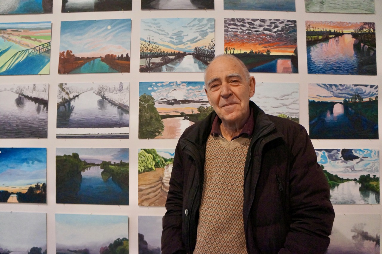 Aus diesen 3000 Fotografien über drei Jahre entwickelte Bottini die 162 Bilder, ein Tagesfoto bildete die Grundlage für die malerische Umsetzung, jeweils mit Betonung der Zentralperspektive. Über das „Wie“ der Darstellung habe er sich gar nicht so viele Gedanken gemacht: „Ich hab‘ einfach losgelassen“. Er habe Bilder von einem Fluss machen wollen, der eigentlich nie im Zentrum der Malerei stand.