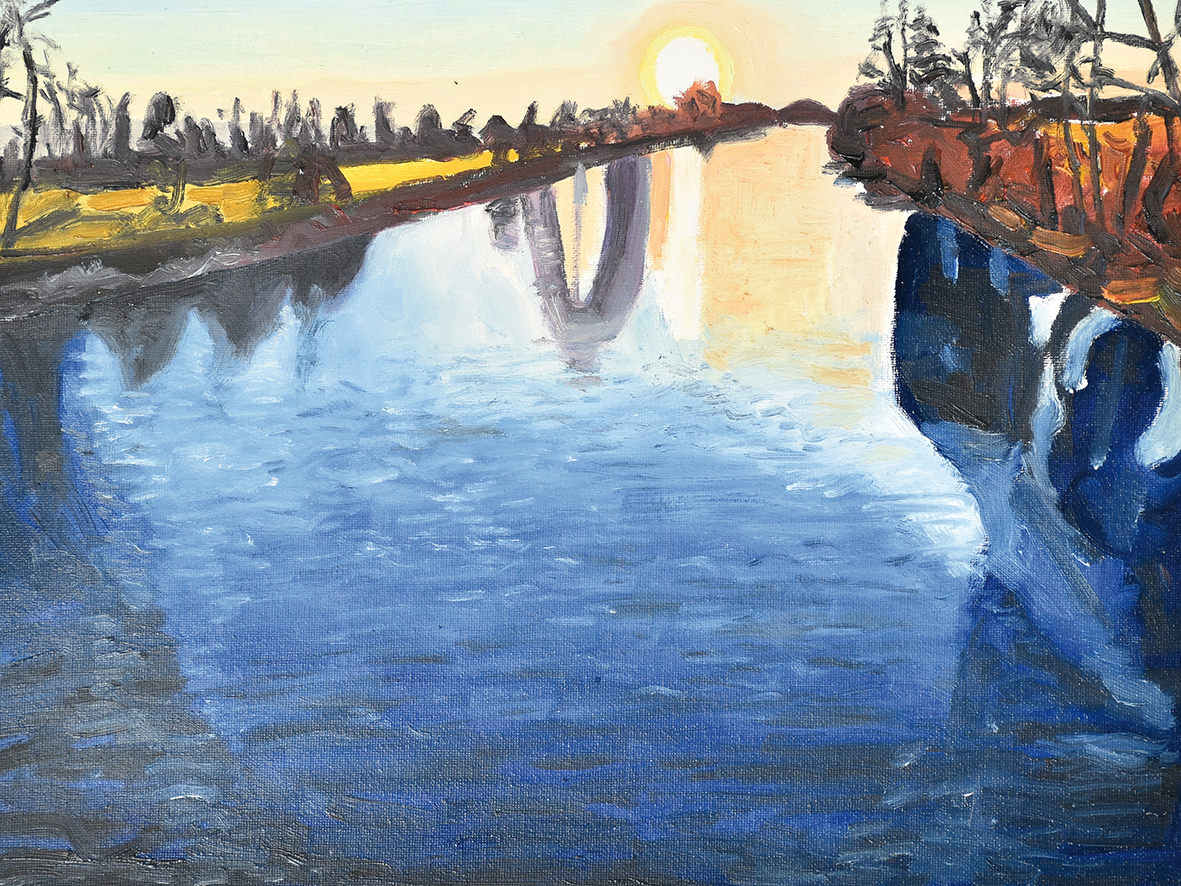 Im März 2022 hatte er dann die Idee, dem Fluss eine malerische Hommage zu widmen. Es folgten regelmässige Besuche der Thur zu verschiedenen Tages- und Jahreszeiten und dabei entstanden fotografische Porträts des Flusses von vier Brücken (Uesslingen, Feldemer Steg, Altikon und Gütighausen).