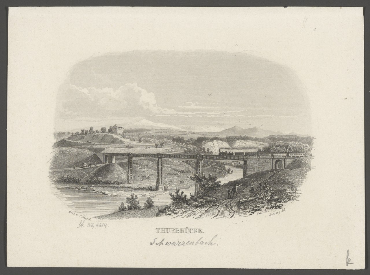 Schon 1825 bis 1827 veröffentlichte der Schweizer Landschaftsmaler Johann Baptist Isenring (1796-1860) im Selbstverlag die aus 20 Blättern bestehende Aquatintaserie „Thurgegenden“. Zuvor hatte er eine Tischlerlehre in Zürich absolviert, wanderte nach Wien und München, als Flachmaler und Vergolder arbeitend und studierte dann an der Münchner Kunstakademie Landschaftsmalerei und Aquatinta, ein spezielles Verfahren der künstlerischen Druckgrafik.