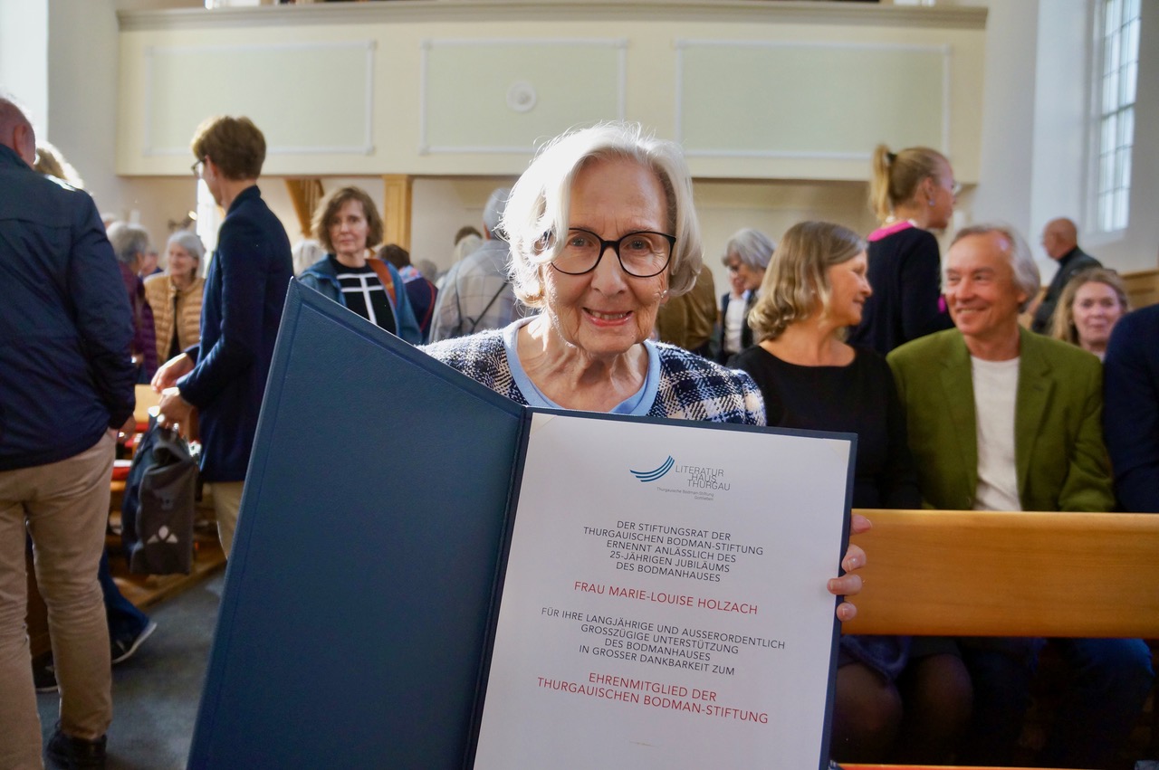 Seine Witwe Marie-Luise, die das Engagement ihres Mannes fortführte, wurde zum Ehrenmitglied der Thurgauischen Bodman-Stiftung ernannt. Es sei mutig gewesen, die Institution zu gründen, meint Regierungsrätin Neuweiler. Man habe sich fragen müssen, ob ein Haus des Buches aufs Land passt. «Heute wissen wir: (…) Die Idee war wegweisend. Das Literaturhaus strahlt weit über den Thurgau hinaus.»