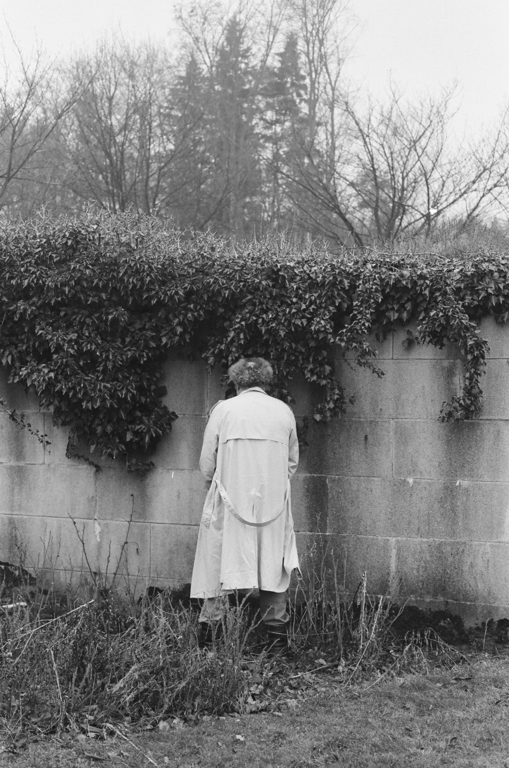 Niklaus zierte sich, als ich ihn auf dem Eugensberg fotografierte – nur einige Bilder gelangen. Eine meiner Nikon-Kameras machte zudem Probleme bei der Auslösung. Eine Aufnahme zeigt ihn von hinten beim Pissen an die Parkmauer gegenüber dem Hauptportal. Die Meienberg’sche Parkfontäne blieb die beste Schwarzweissaufnahme von Niklaus auf dem Eugensberg.