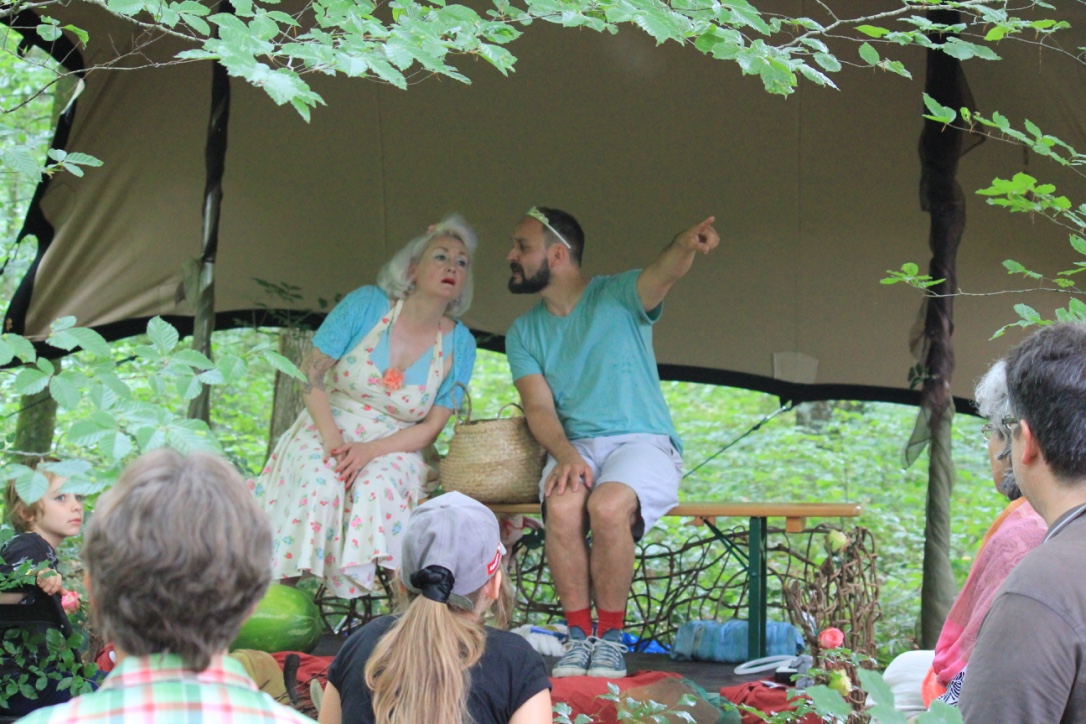 Witzige Märchentante und schräge Prinzessin: Minitheater Hannibal beim Märchen- und Geschichtenfestival im Romanshorner Wald. Bild: Barbara Camenzind