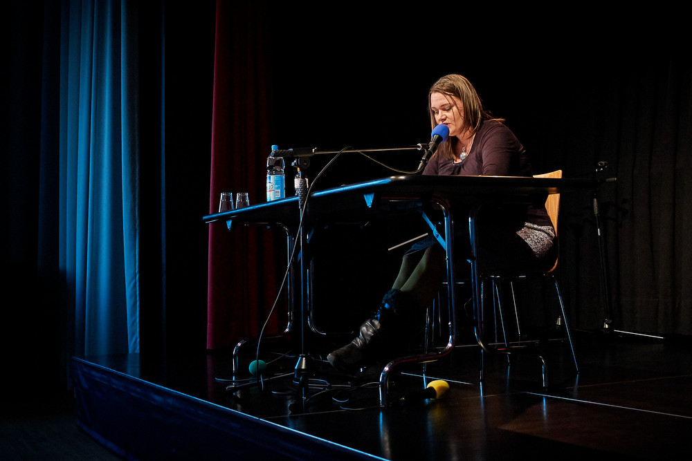 Als nächste betritt Zora Debrunner die Bühne. Dass die mit einer Grimme-Online-Award-Nomination geehrte Autorin und Bloggerin vor der Lesung die Zuhörer ermuntert, doch gerne zu twittern, hat seinen guten Grund: Ihr Roman «Lavinia Morgan – Privatdetektivin» fand seine erste Heimat im Internet und seine Leserinnen und Leser über soziale Medien wie Twitter und Facebook.