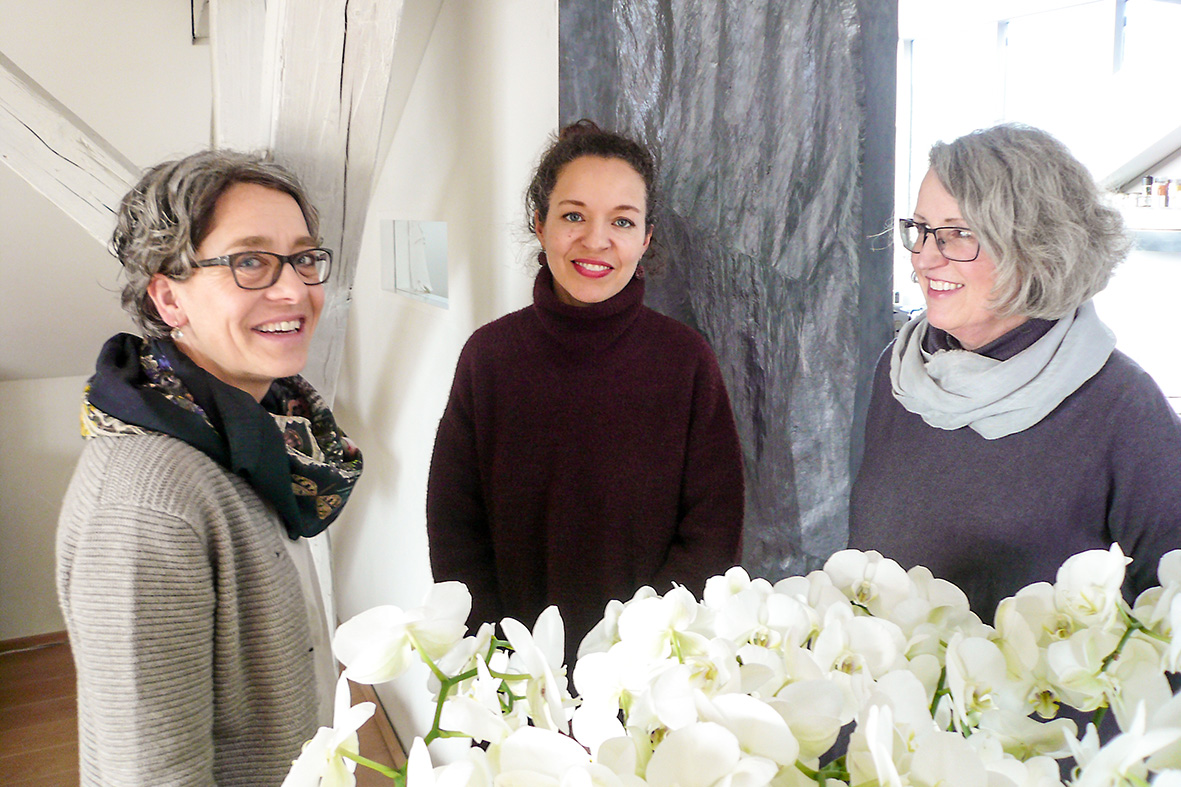 Lieber als über wichtige Nebensächlichkeiten reden sie von ihrem persönlichen Gewinn. „Was wir für ‚Blumen für die Kunst‘ herstellen, ist in jeder Hinsicht etwas Besonderes für uns, vor allem ist es ein Geschenk an uns selbst“, sagt Heidi Huber stellvertretend für ihre Kolleginnen. Wann sonst können sie mit einem Werk aus der bildenden Kunst auf diese Weise Zwiesprache halten und die Pflanzen ihre eigene Geschichte erzählen lassen? „Es ist eine Ehre, dass wir mitmachen dürfen. Keine Frage also, dass wir uns gern dieser Aufgabe stellen, die uns über das übliche Mass hinaus fordert und uns an unsere Grenzen führt. Es ist erstaunlich, wie viel wir dabei lernen.“