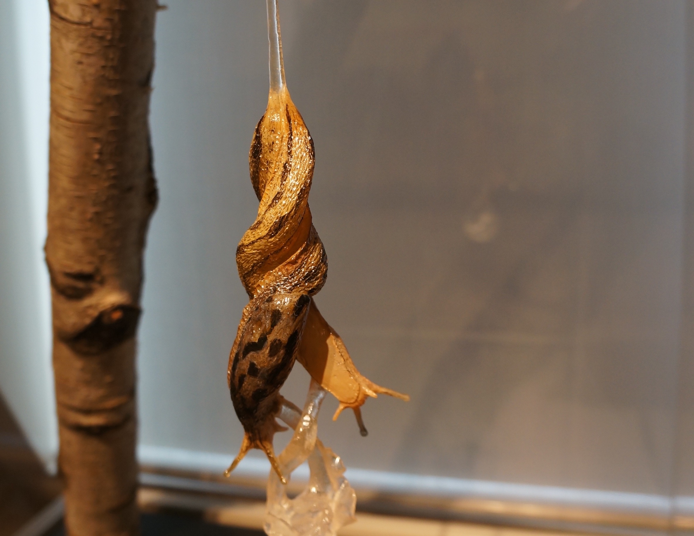 „Kein Tier wurde extra für die Ausstellung getötet", betont Hannes Geisser. „Sie sind verunfallt oder nach der Geburt gestorben – so wie das Elchkalb, an dem noch die Nabelschnur zu sehen ist." Fünfzig Präparate kann man bewundern, von der niedlichen Wildkatze bis zum kopulierenden Höckerschwan-Paar. Besonders spektakulär muten zwei ineinander verschlungene Tigerschlegel an. „Diese einheimischen Nachtschnecken sind Hermaphroditen und tauschen gegenseitig Spermienpakete aus, um jeweils ihre Eizellen zu befruchten."