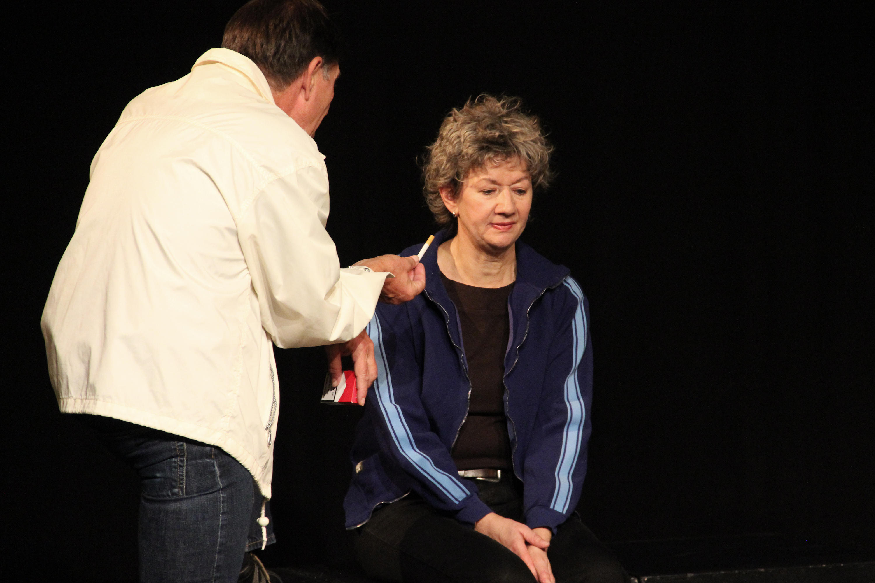 Roland Lötscher als Referent mit der rauchenden Assistentin (Agnes Caduff).