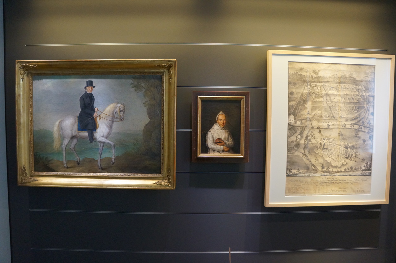 Schräg gegenüber kann man ein fast schon kitschiges Ölbild einer «Geselligen Runde» von Mönchen sehen. Gemalt hat es Adolf Humborg wohl um das Jahr 1900. «Das ist eigentlich ein historischer Fehler», erklärt Felix Ackermann. «Die Mönche sind durch ihre hellen Kutten klar als Kartäuser zu erkennen, aber die hatten bestimmt keine geselligen Runden.»