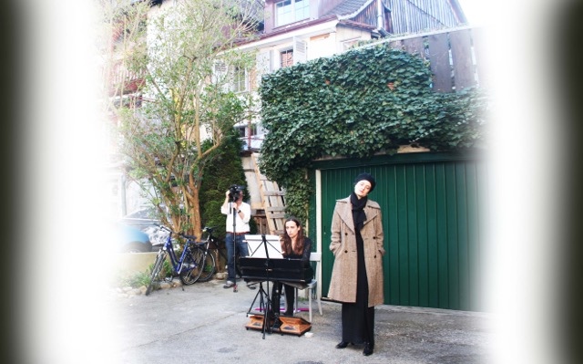 Auftritt der Sängerin Irina Ungureanu (re) und der Jazzpianistin Vera Kappeler auf der Rückseite des Hauses zur Glocke. ©Christine Forster