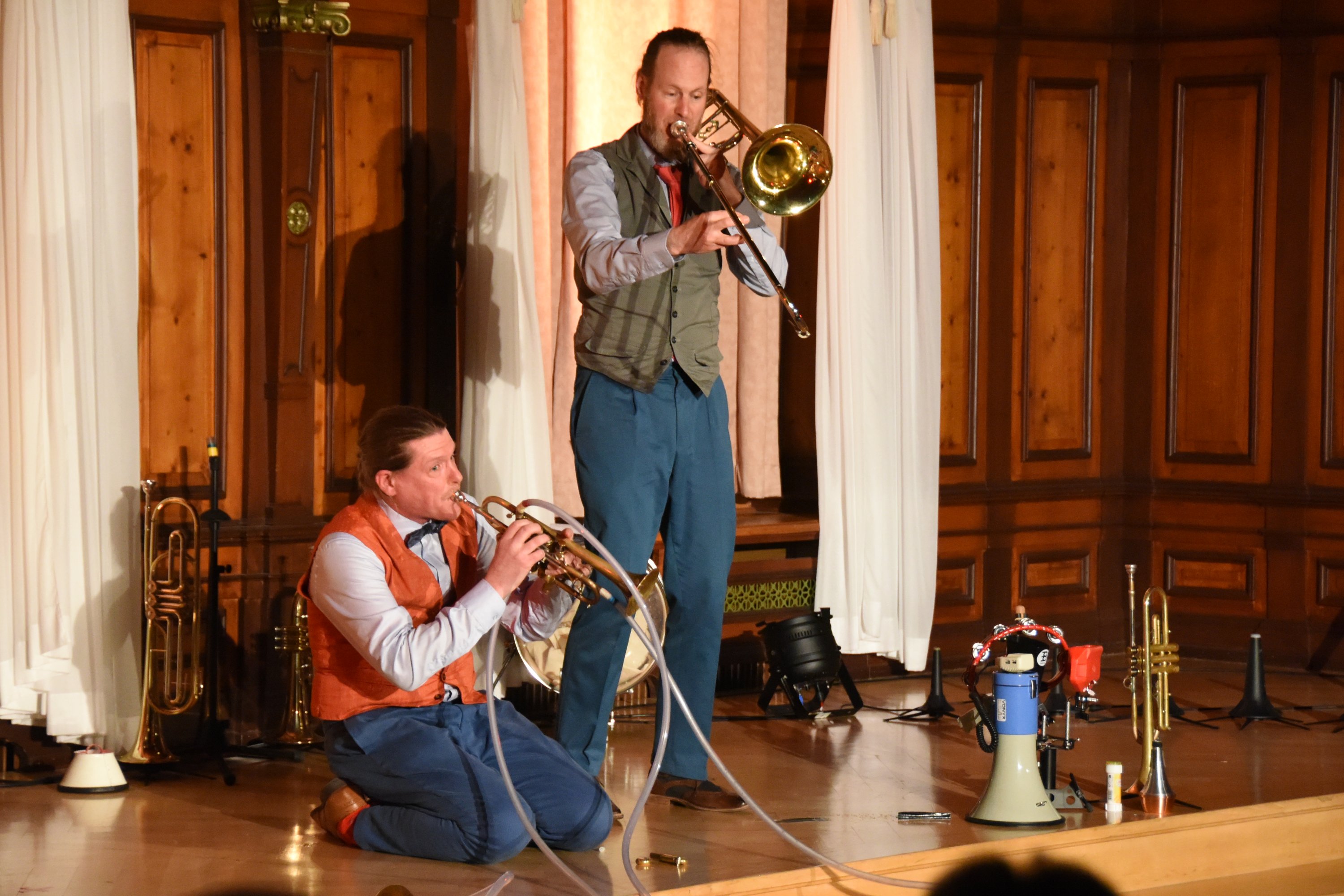 Einen ganz besonderen Glücksmoment gab es für die Zuhörenden, die Christoph Luchsingers Arbeiten im Bereich der zeitgenössischen Musik kennen: Seine dreiköpfige Schlauchtrompete, bekannt aus Luchsingers Neue-Musik-Reihe NŒISE, bekam auch einen Auftritt. Amüsant bespielt von den Kollegen, die den fauchenden Zerberus immer wieder umplatzierten. Avantgarde mit leichtem Schalk macht sowas von Spass.