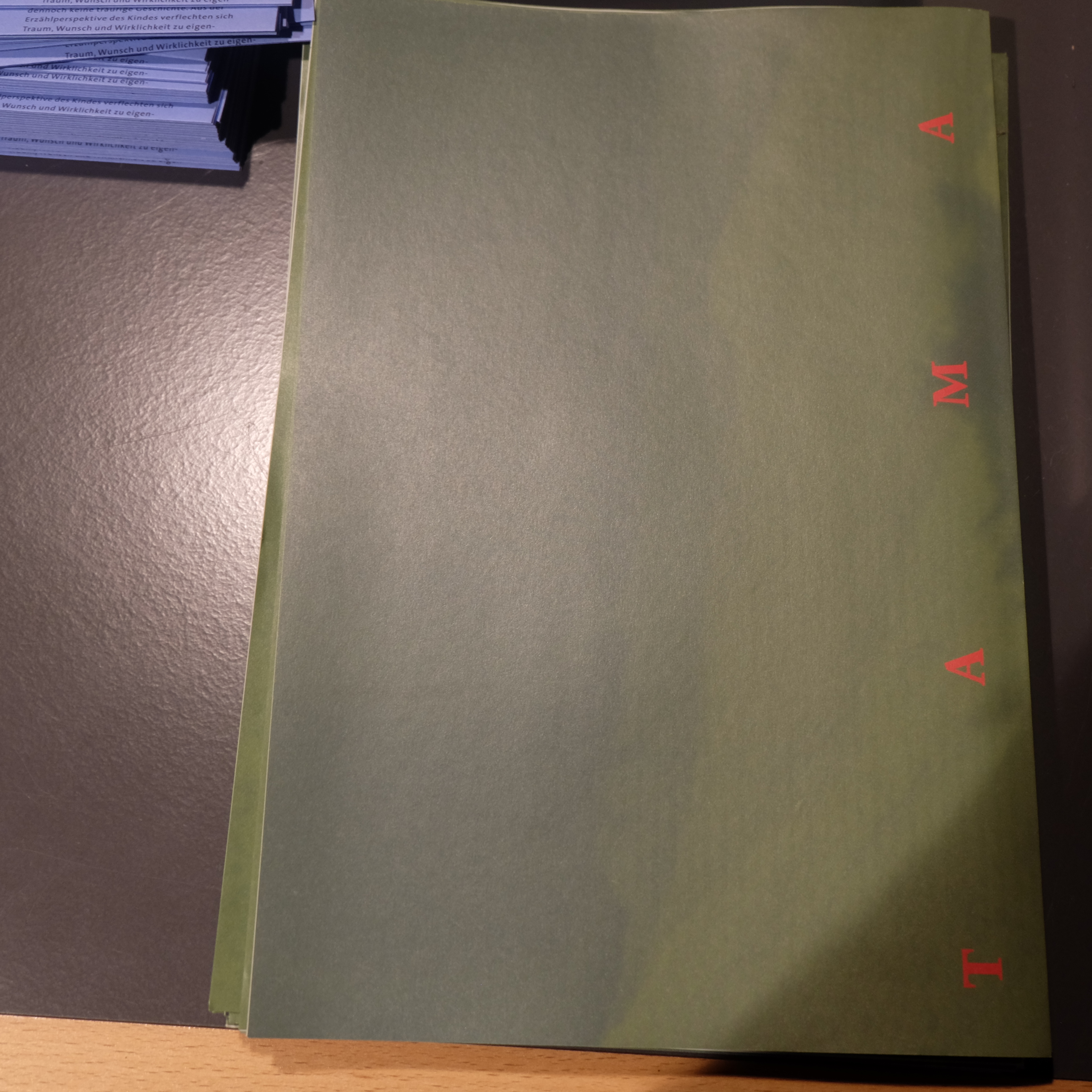 Zellweger erklärt der Autorin den Entstehungsprozess des Plakats zu "Tamangur" mit Neuinterpretationen des ursprünglichen Gedichts „Tamangur“ von Peider Lansel, das anlässlich der 10. Frauenfelder Lyriktage gedruckt wurde.