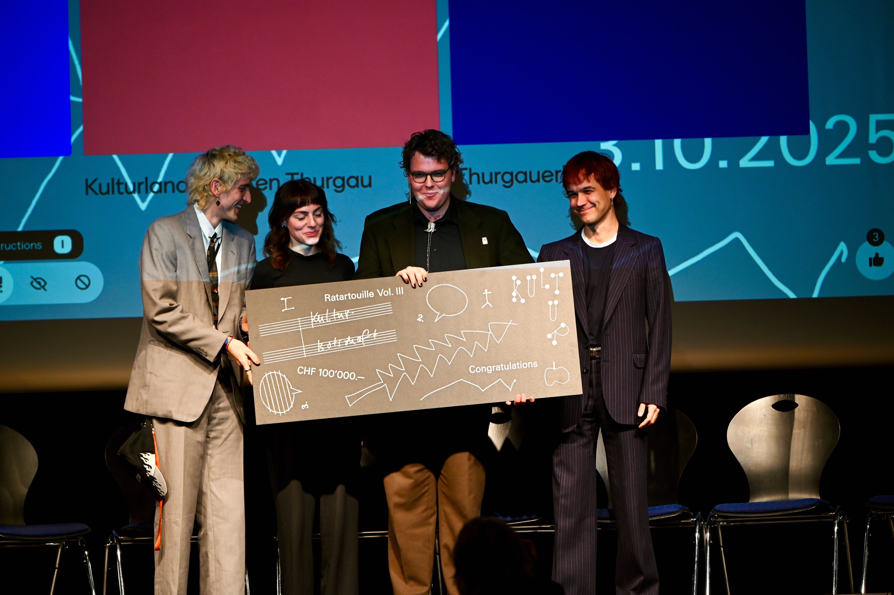 Ratartouille, 2020 von der Kulturstiftung lanciert, ist ein experimenteller Wettbewerb für Kulturprojekte im Thurgau. Alle zwei Jahre konkurrieren seither Ideen um 100’000 Franken. Das Besondere: Die Entscheidung fällt nicht eine Jury, sondern ein Publikum, das über die Vergabe der Mittel abstimmt. Der Wettbewerb soll neue Akteure sichtbar machen, Risiken ermöglichen und die Kulturförderung demokratischer gestalten. Die jüngste Ausgabe fand im Oktober 2025 in Weinfelden statt.
