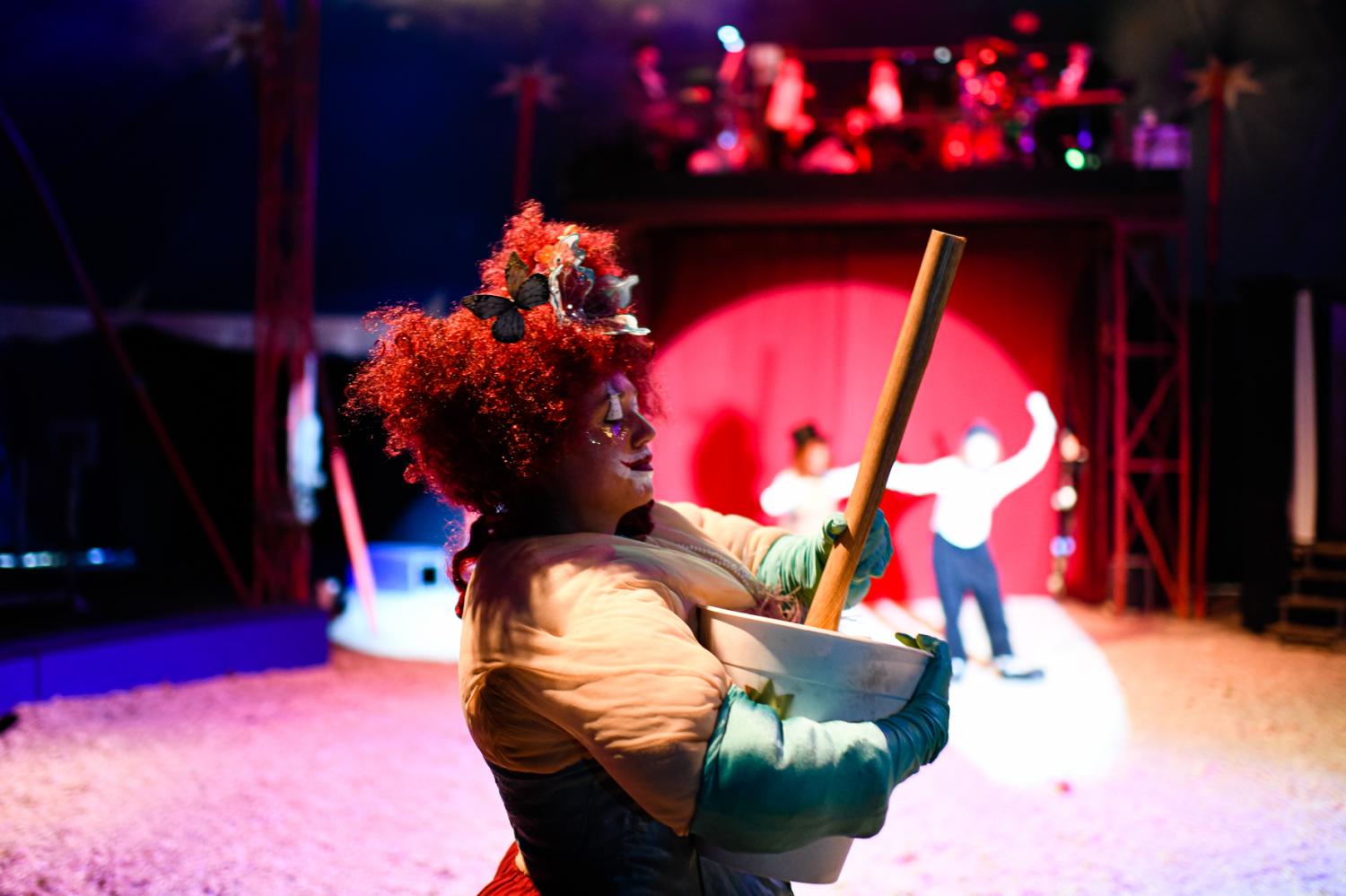 Was eben noch die Idylle am See auf dem Konstanzer Festgelände Klein Venedig gewesen war, verwandelte sich in der Pause der Premiere in eine Szenerie, bei der die Mitarbeiter des Konstanzer Theaters durchaus auch als „Katastrophenhelfer“ einen guten Job machten. Dennoch musste die Premiere abgebrochen werden, denn das Zirkuszelt stand schon teilweise unter Wasser – stand aber immerhin noch, genau wie das benachbarte Bierzelt, in dem nicht wenige der Premierenbesucher Schutz gesucht hatten. Jedenfalls behalten die Karten ihre Gültigkeit, sodass man sich „Foottit und Chocolat“ noch einmal in Gänze anschauen kann.