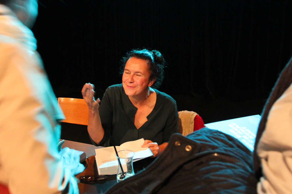Für Moderator Gallus Frei, selbst einer der Stiftungsräte, war die Vielzahl der erzählerischen Schichten ein wichtiger Anknüpfungspunkt. So sauber die Zeitebenen voneinander getrennt sind, so fantasievoll fabuliert Johanna Lier innerhalb ihrer Erzählstränge. Eine Spur aus Liers Biografie, vermutete er. Immerhin vereint Liers berufliches Profil nicht nur Journalistin und Autorin. „Ja, da kommt auch die Dichterin in mir durch,“ meinte Lier. „Ich interessiere mich für die Verbindung von dem Dokumentarischen mit dem Poetischen. Ich vermische wahnsinnig gerne Textsorten miteinander und schaue, wie sich dabei Wirkungen verändern.“ Lier wechselt schon einmal spontan von der personalen zur Ich-Erzählung oder von der Erzählung zu Dialogpassagen oder Briefen.