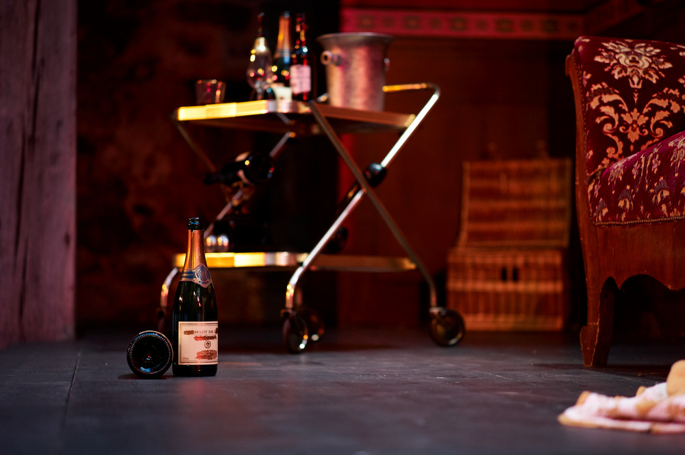Alexandre Pelichet erfreut als herrlich versnobter Algernon, den nichts und niemanden, bis auf die schöne Cecily (Ramona Fattini), erschüttern kann. Er bewegt sich wie ein Panther und weicht elegant leeren Champagnerflaschen und geschliffenen Redeattacken aus. Falk Döhler gibt einen leidenschaftlichen John, der in Liebe zur altjüngferlichen, aber nicht minder attraktiven Gwendolen (Marina Santella) entbrennt. Sein Auftritt begeistert umso mehr, als wir am Ende der Aufführung erfahren, dass er kurzfristig für den erkrankten Jan Opderbeck eingesprungen ist – Döhler hatte gerade einmal zwei Tage Zeit, zu John/Jack zu werden.