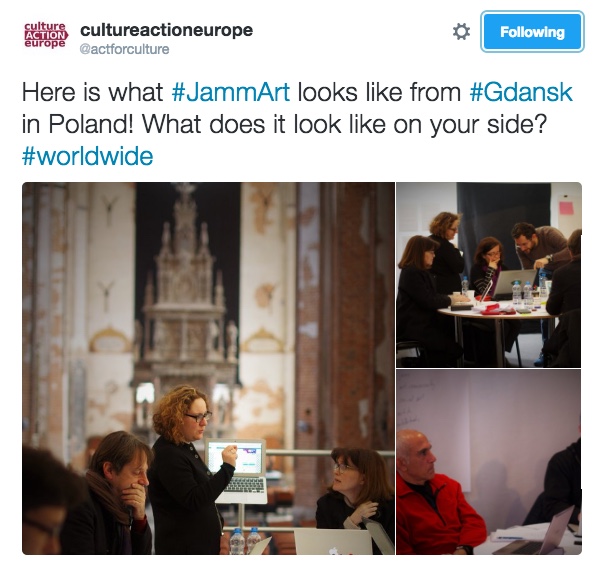 Als Internet-Projekt bediente sich die Jamm’Art verschiedener Online-Dienste. So wurden neben der Plattform www.jammart.eu auch Instagram, Twitter und Facebook mit aktuellen Informationen gepflegt. (Screenshot: Twitter, @actforculture)