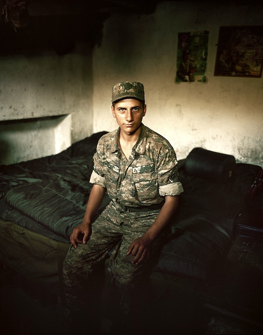 „Krieg ohne Krieg“ heisst der Titel eines Bildbandes, den Nadine Olonetzky über die Arbeit des Thurgauer Fotografen Meinrad Schade herausgegeben hat. Bisher hat er seine preisgekrönten und berühmt gewordenen Fotografien tatsächlich an den zeitlichen Rändern von Kriegen aufgenommen. Unter anderem in Berg-Karabach im Jahr 2011. Wir sehen zum Beispiel einen 19-jährigen Soldaten mit leerem Blick, das Bild sagt mehr als jede explodierende Bombe. Der Soldat leistete einen zweijährigen Dienst an der sogenannten Frontlinie zwischen Armenien und Aserbeidschan, zwischen denen seit 20 Jahren ein ungelöster Konflikt herrschte.