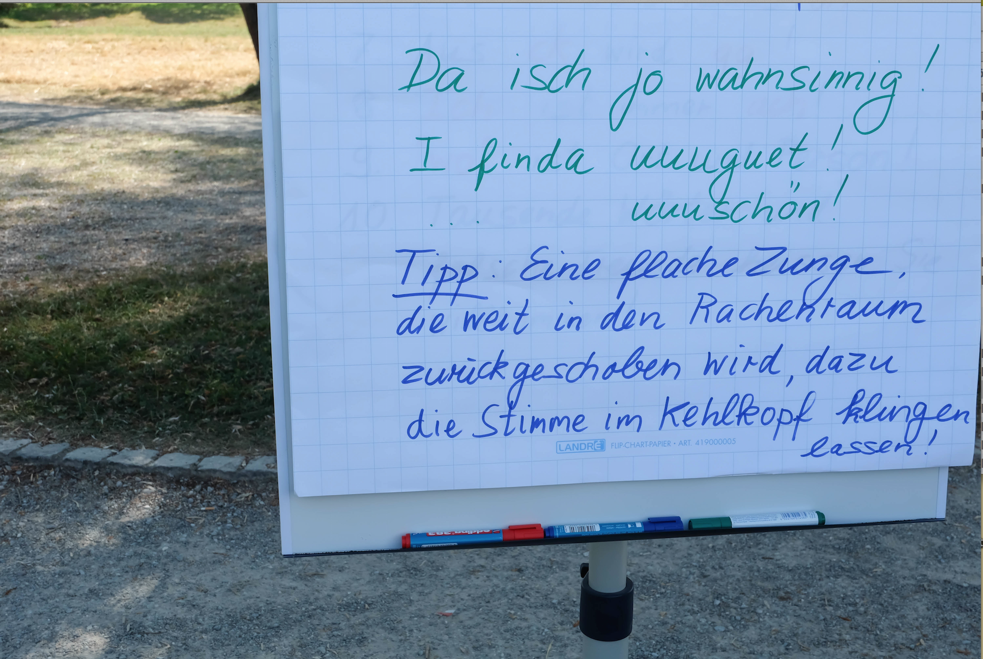 "Und jetzt alle, aber gaaaanz langsam!" Hubi Hofmanns Gesichtsmuskeln sind bis zu den Grübchen gespannt. Wie ein Dirigent lässt er seine Hände über sein lernhungriges Publikum segeln. "Da macht ihr euch sofort sympathisch, wenn ihr sagt: "I-FINDA-UUUUUUHUEREGUET!". Der rund 20-köpfige Stimmenchor stimmt mit ein und lacht vergnügt.