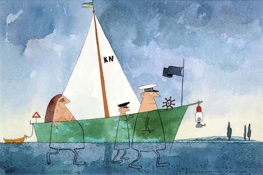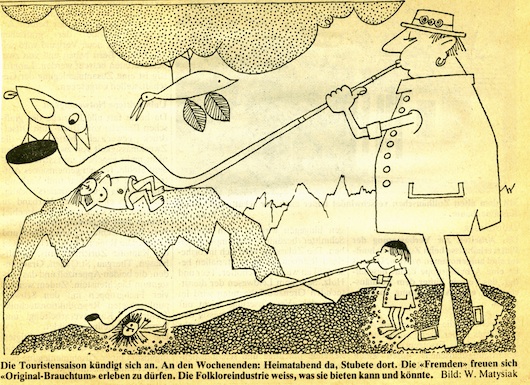 Walter Matysiak, Die Touristensaison kündigt sich an, Illustration für das "Ostschweizer Tagblatt", Zeichnung; 1982