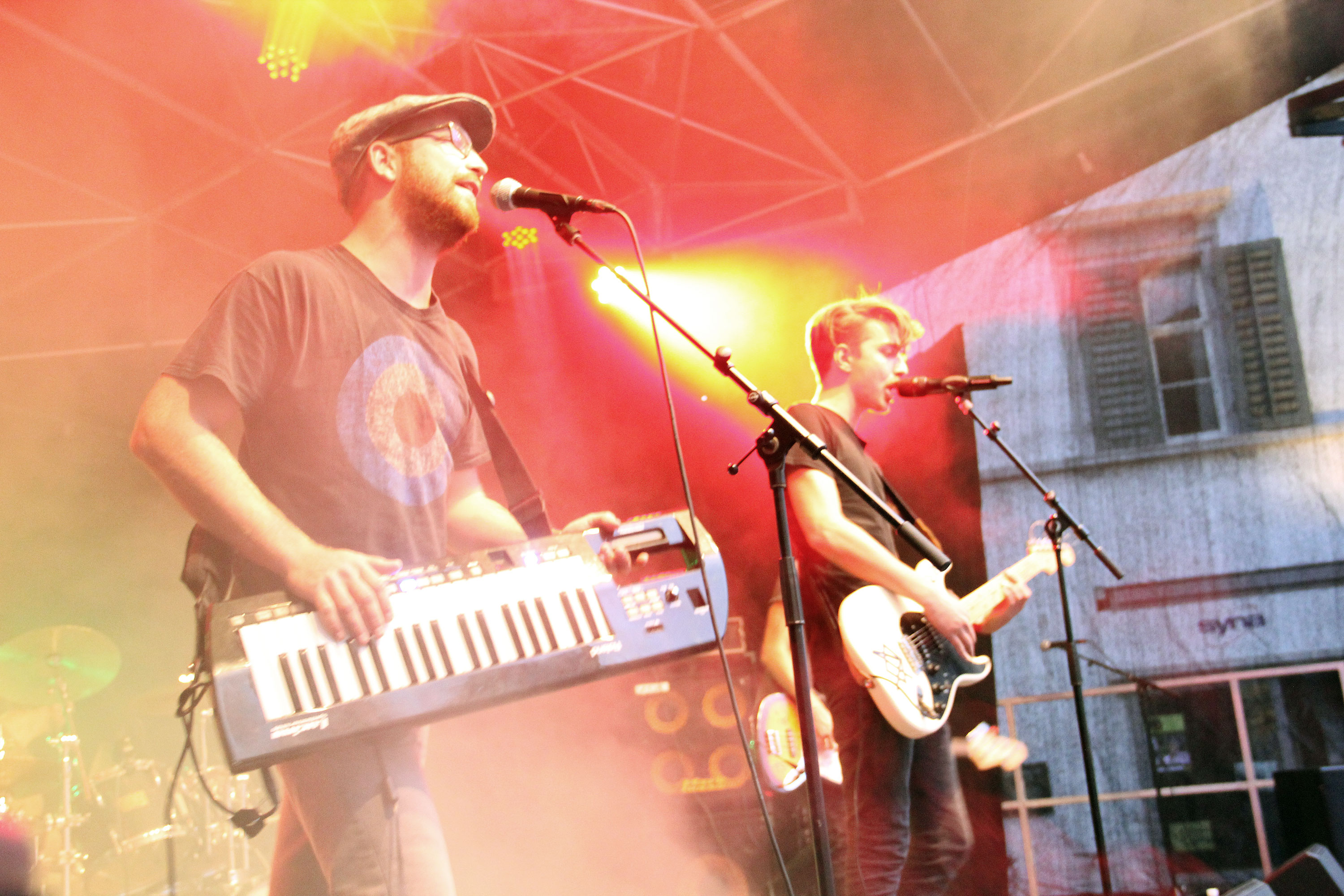 Der Auftakt am Freitag: The Rising Lights – eine junge Pop-/Rock-Band aus der Gegend mit Flair für Feinschliff und dem einen oder anderen starken Bandcontest-Resultat. Die Songs sitzen in etwa so gut wie die Frisuren des Trios, die Musik passt perfekt ins Radio, die Instrumente klingen sauber. Beeindruckend professionell fürs Alter. Ein passender Start mit Show – zumindest für beinahe alle restlichen Bands.