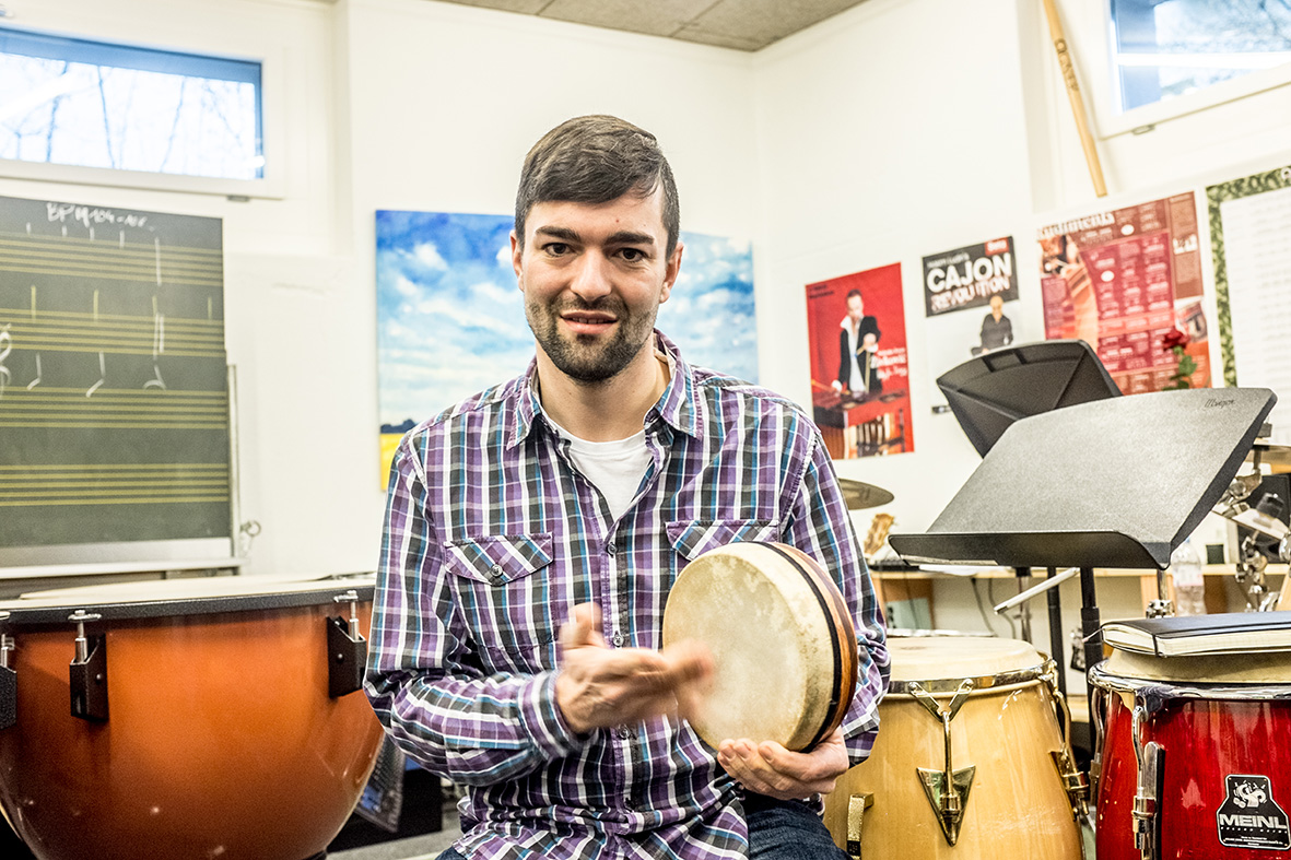 Samuel Forster in der Musikschule Weinfelden. Gewinnt Timebelle, schmeisst deren Chef eine Party. (Bild: Rolf Müller)