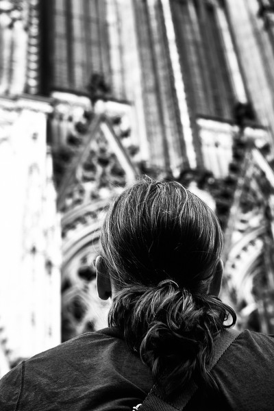 Wir verlassen den Kölner Hauptbahnhof, gehen an einer Demonstration von DIE LINKE sowie Dutzenden von Polizeiautos vorbei. Willkommen in Deutschland. Und dann stehen wir auf dem Domplatz.