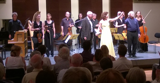 Juliane Banse und Heinz Holliger (vorne, von re) leiteten die 20. Ittinger Pfingstkonzerte 2014. Bild: Christian Brühwiler