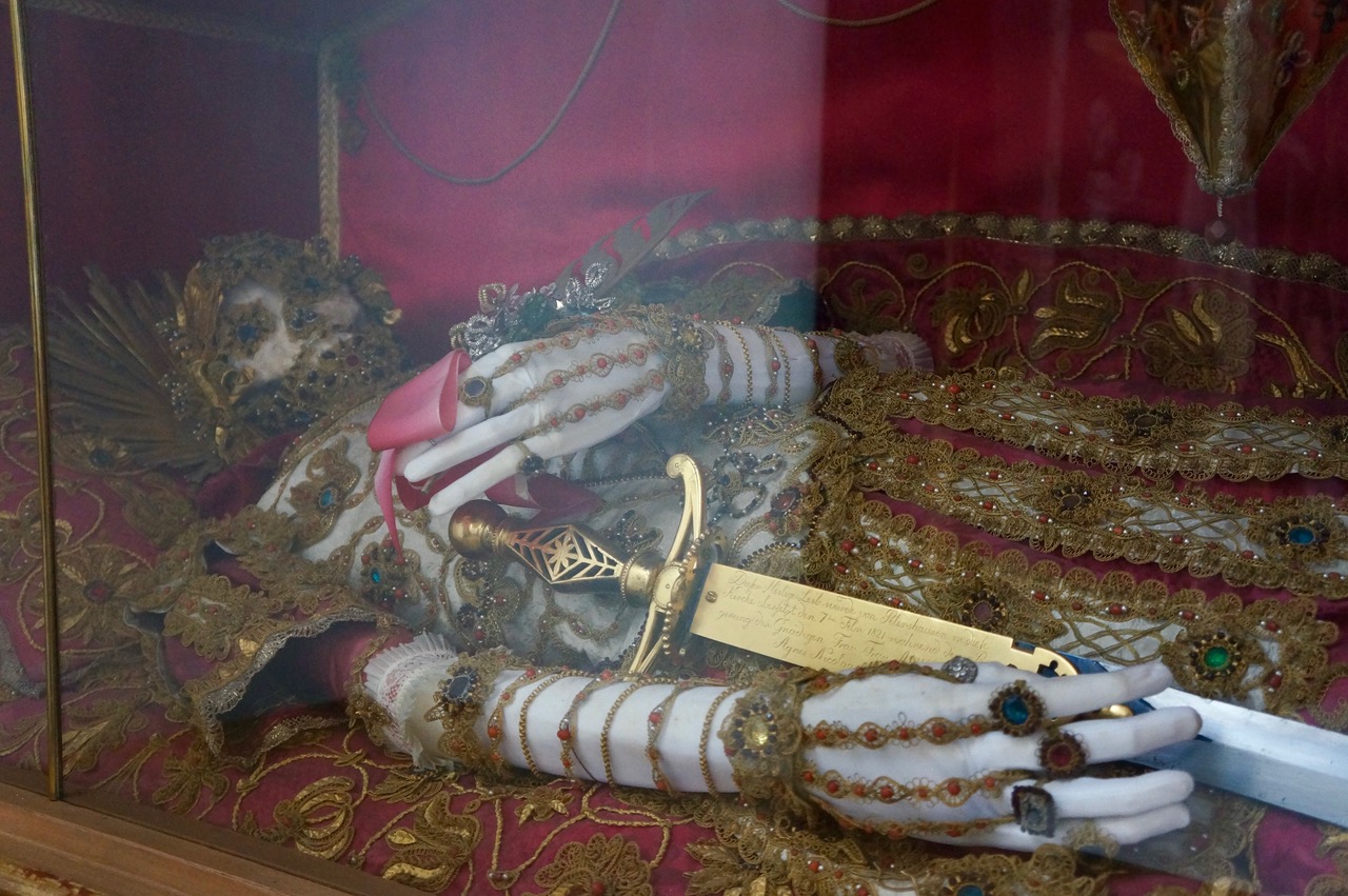 Das Reservoir an Reliquien scheint nicht zu versiegen. Körperreliquien bestehen meist aus Knochen, gelegentlich aus Haaren, Zähnen oder Geweberesten. Das sind Reliquien erster Klasse. Gegenstände aus dem persönlichen Besitz eines Heiligen oder Märtyrers sind Reliquien zweiter Klasse. Reliquien der dritten Klasse sind zum Beispiel Tücher, die in eine Gruft herabgelassen wurden und dabei durch Kontakt mit einer Reliquie erster Klasse einen besonderen Bezug zum Heiligen bekommen.