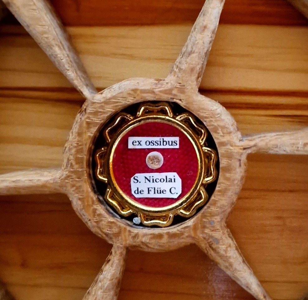 Ein winziges Stück aus dem Skelett von Nikolaus von der Flüe, liebevoll gefasst. Bild: Sr. M. Dominique Leuenberger
