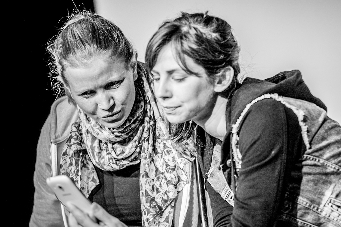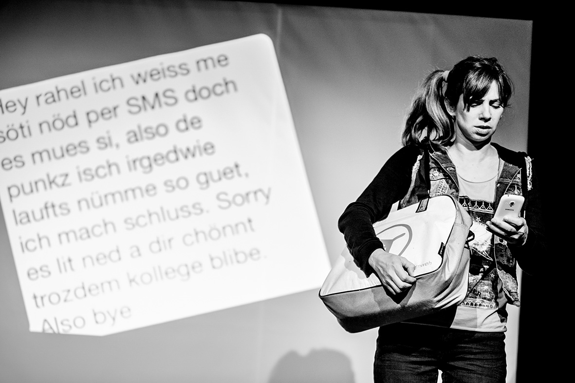 Die SMS, die alles auslöst: Rahels Freund macht Schluss, weil er mit Leonie, ihrer besten Freundin, zusammen sein will. (Bilder: Theater Bilitz)