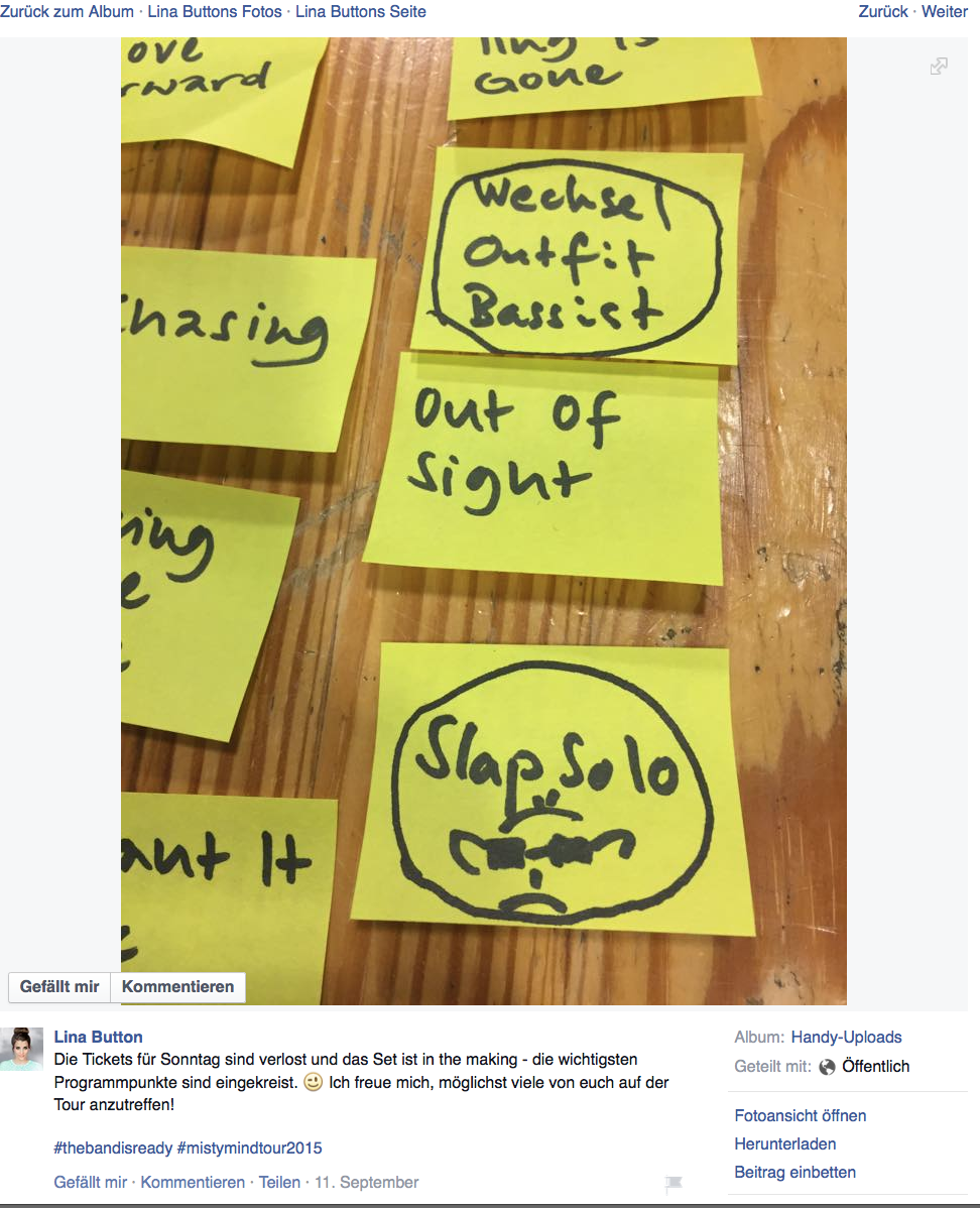 Vorbereitungen auf die Show vom Samstag – der Bassist scheint viel arbeit zu haben. Gesehen auf Facebook.
