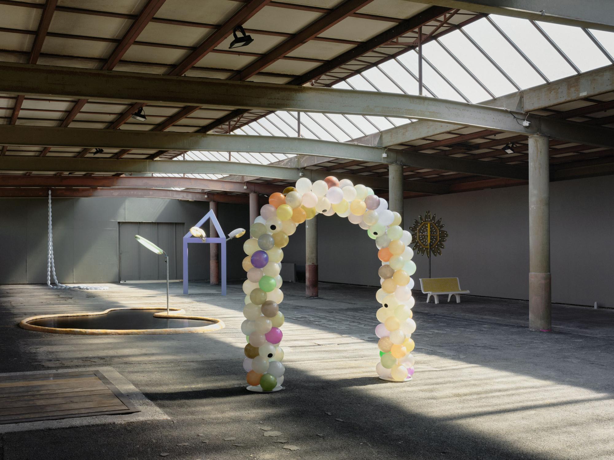 Wirkte Barbara Signers, an Ballontore von Gartenfesten angelehnte, „Gate I (Eternity)” (2023) bei Tageslicht noch wie eine gespenstische Erinnerung an ein längst verjährtes Hochzeitsfest, so leuchten die mit Polyurethan zur festen Plastik gebildeten Ballone nun wie ein Tor zu einer intensivierten Gegenwart.