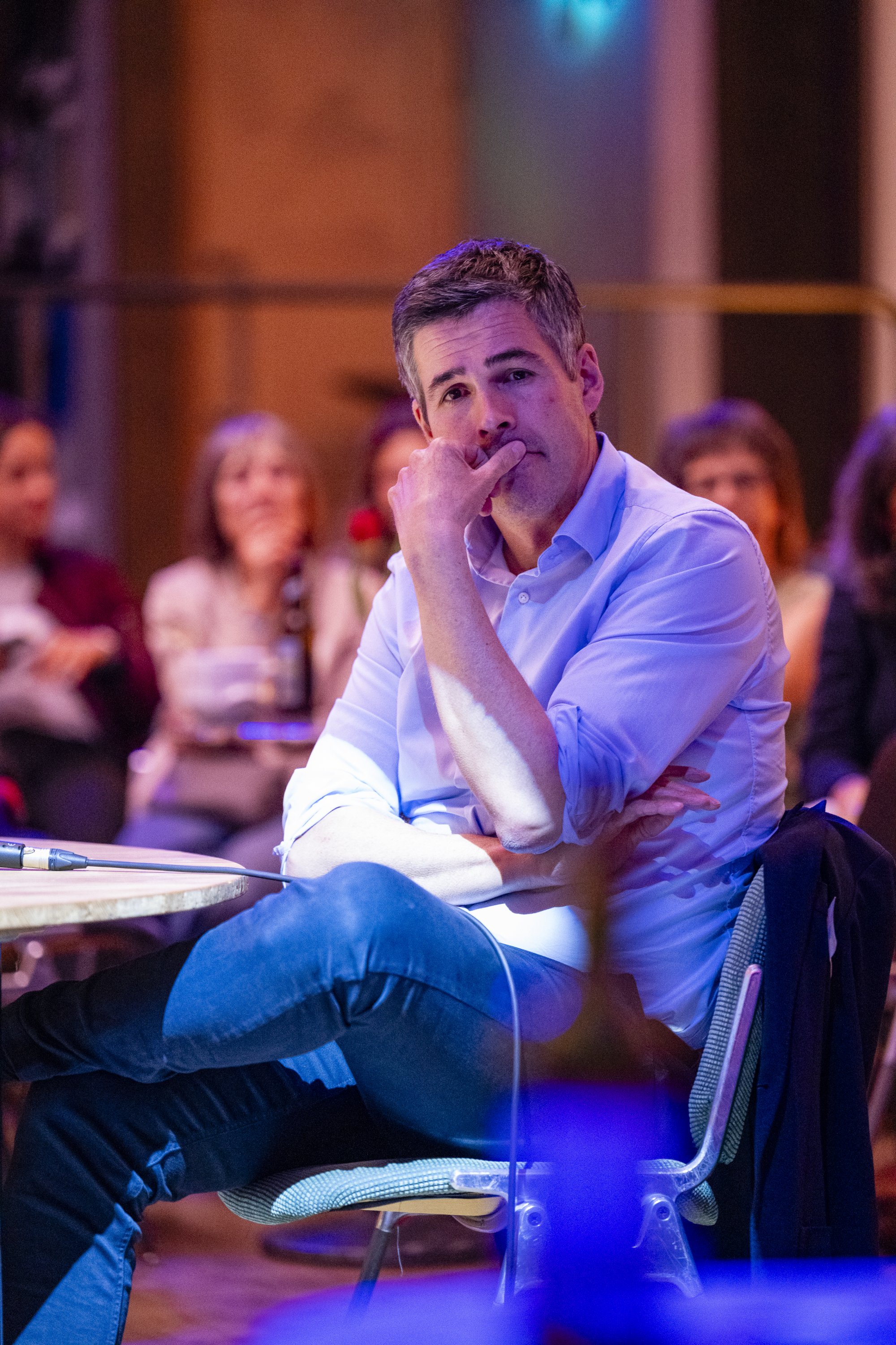 Roland Ledergerber, Kantonsbaumeister, bei Kultur trifft Politik, rechts im Bild Moderatorin Samantha Zaugg. Bild: Jörg Rudolph