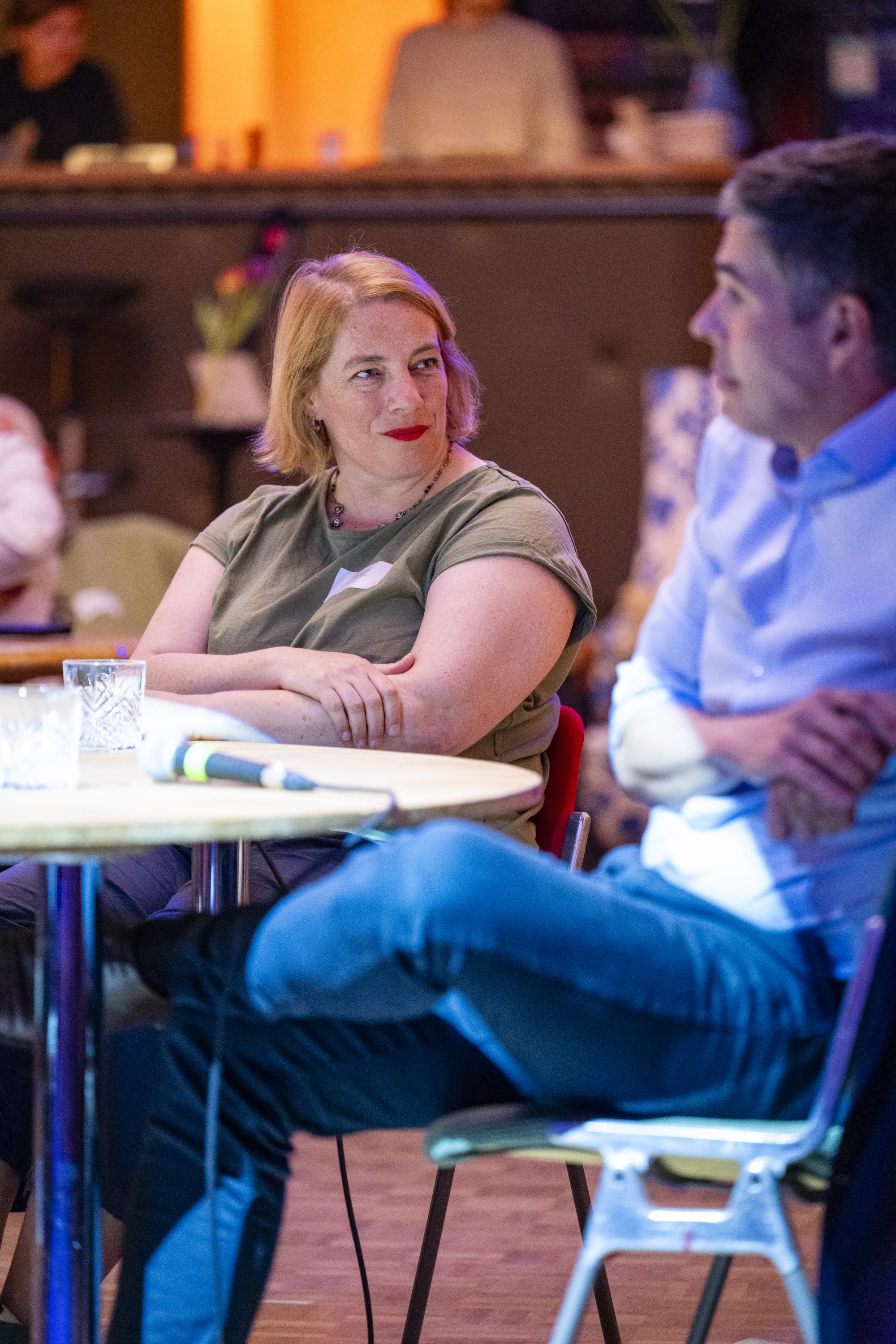 Karin Gubler, Kulturmanagerin aus Frauenfeld, war zu Gast bei Kultur trifft Politik. Rechts im Bild: Michael Breitenmoser von der HRS. Bild: Jörg Rudolph