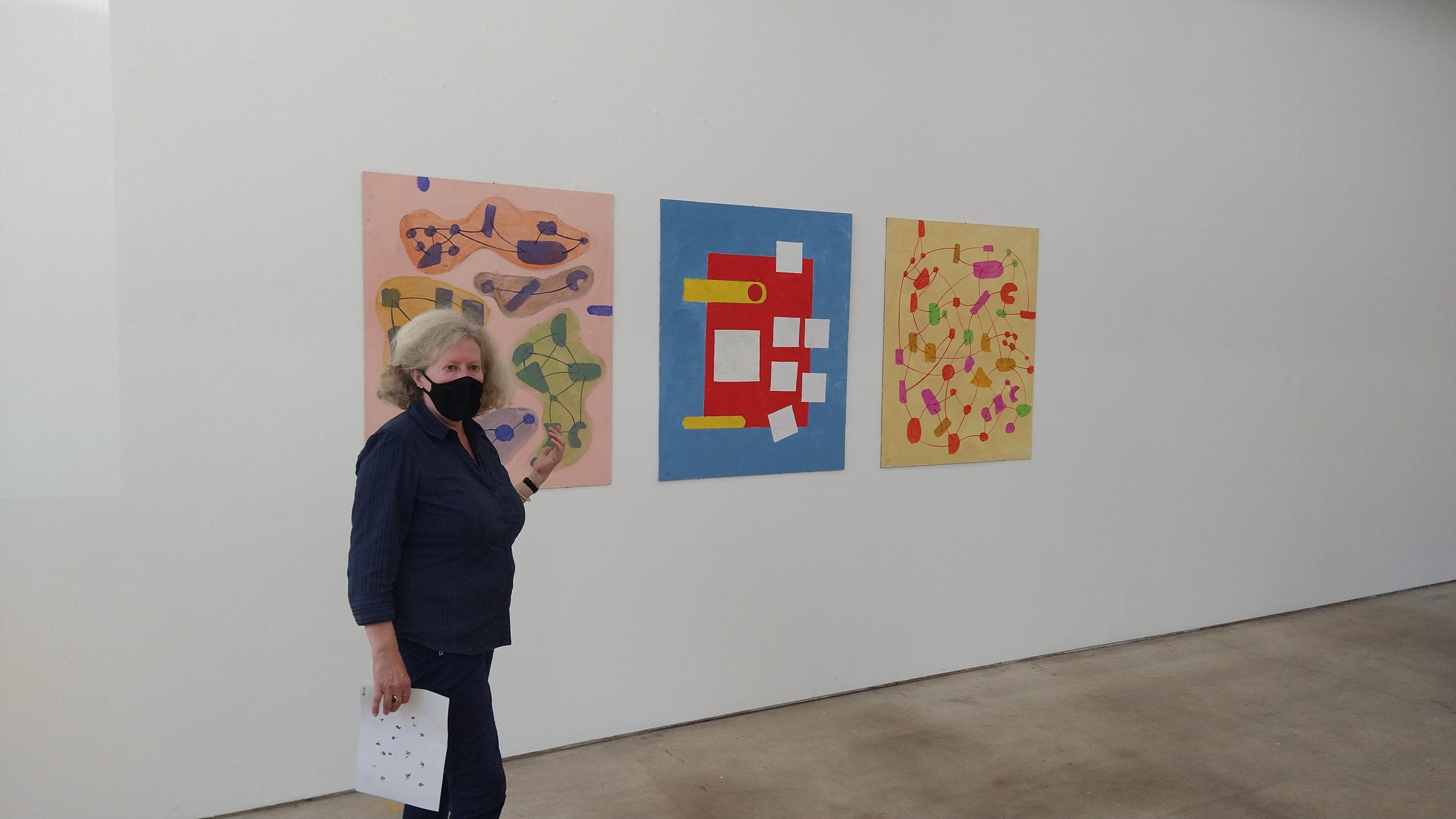 Miroslaw Halaba überträgt die Formen der Pandemie von Flugblättern bis Viruspattern in hochreduzierte, beinahe kindliche Strukturstudien, während Bettina Carl ihre Werkgruppe „Einsilbige Tiere" mit flinkflotten Strichabfolgen aufs Papier tanzt.